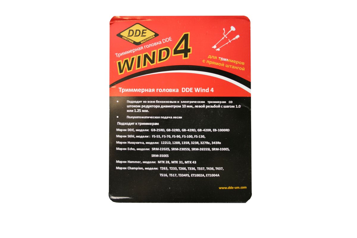 Головка триммерная полуавтоматическая DDE Wind 4 аналог HUS T25 NEW (левая ,10 мм, шаг 1,25мм + переходник 1,0 мм)