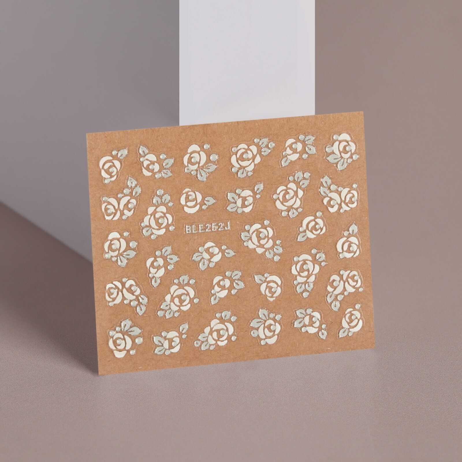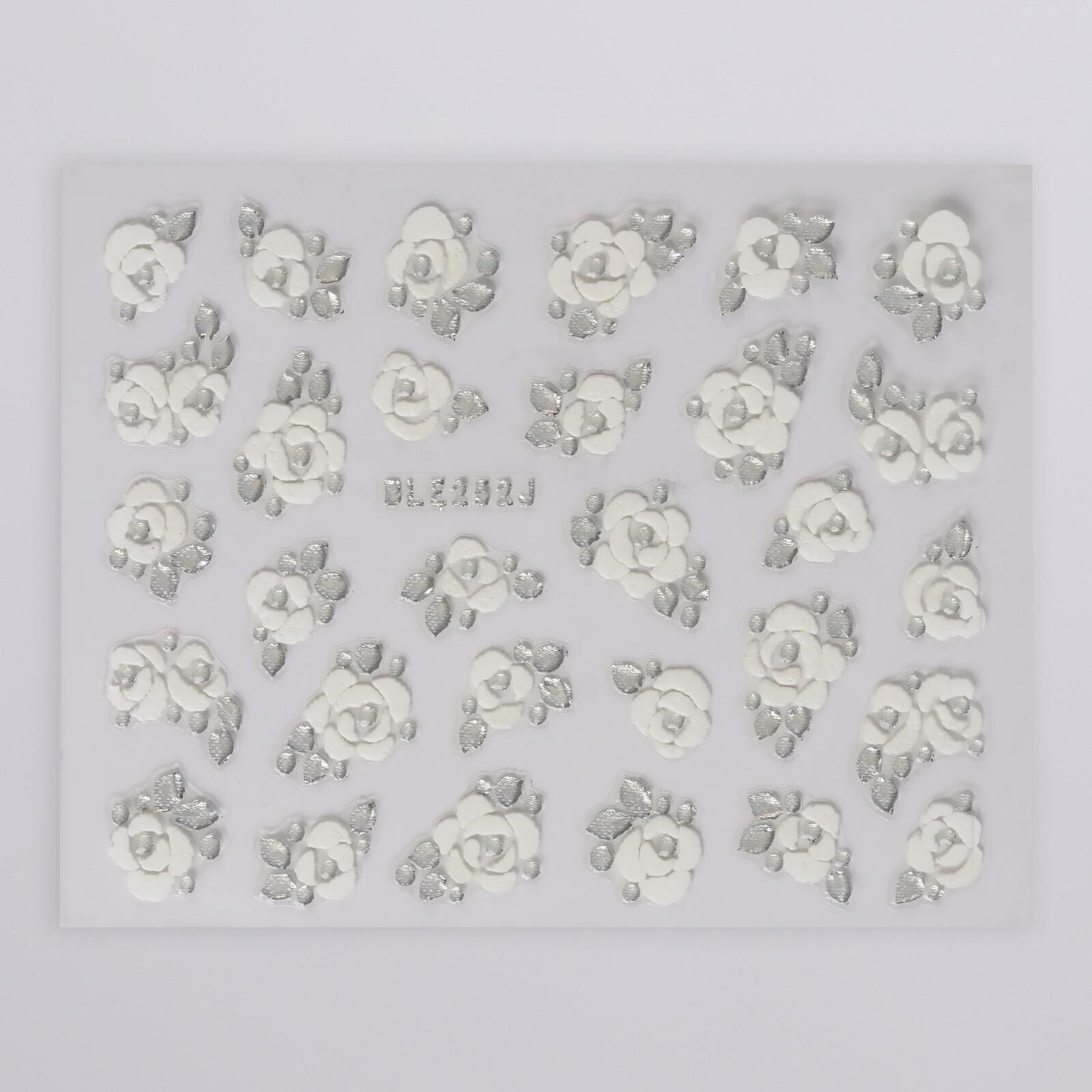 Наклейки для ногтей «Розы», 3D, цвет белый/серебристый