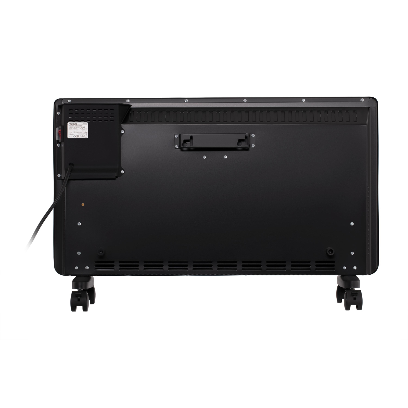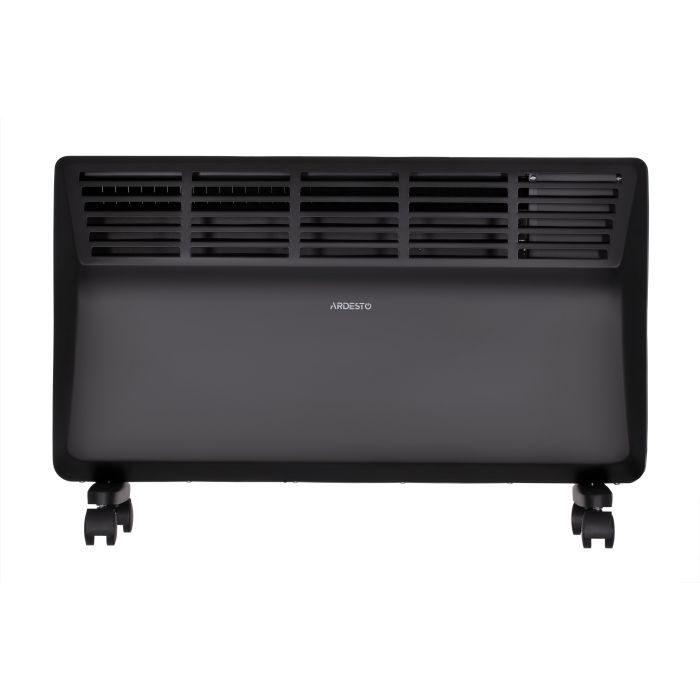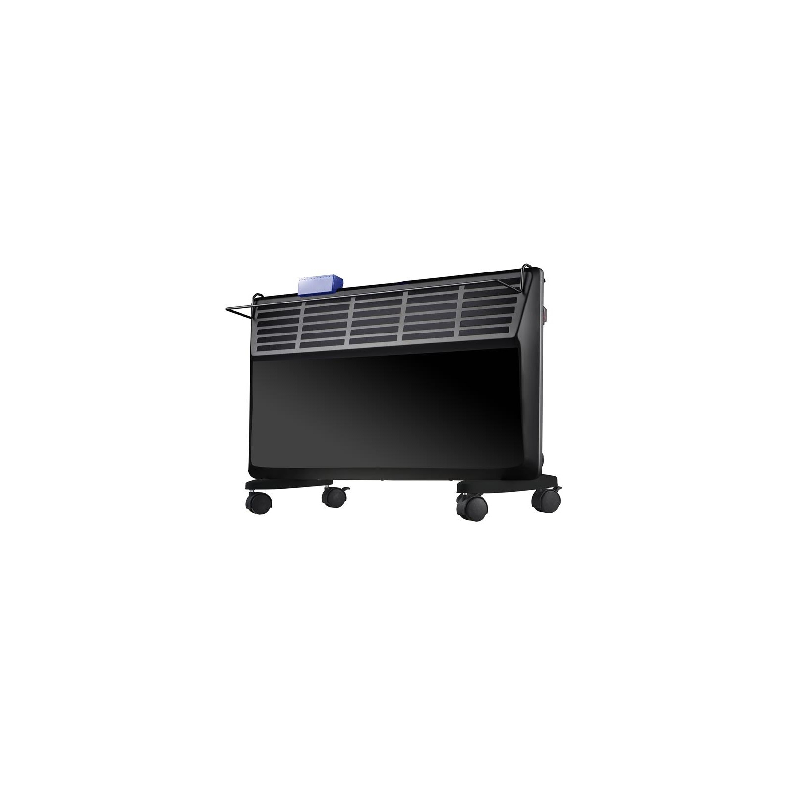 Електричний конвектор із механічним керуванням чорного кольору, класом захисту IP20 і двома режимами потужності 1 000/2 000 Вт. Оснащений регульованим термостатом і розрахований на обігрів приміщень площею до 20 м2. Клас енергозахисту – перший. У цій моделі передбачено сушку та контейнер для природного зволоження повітря. Є захист від перегріву та датчик від перекидання. Ця модель обігрівача має два типи монтажу – настінний і підлоговий. Кронштейни та опори із коліщатками для підлогового встановлення постачають у комплекті з обігрівачем.