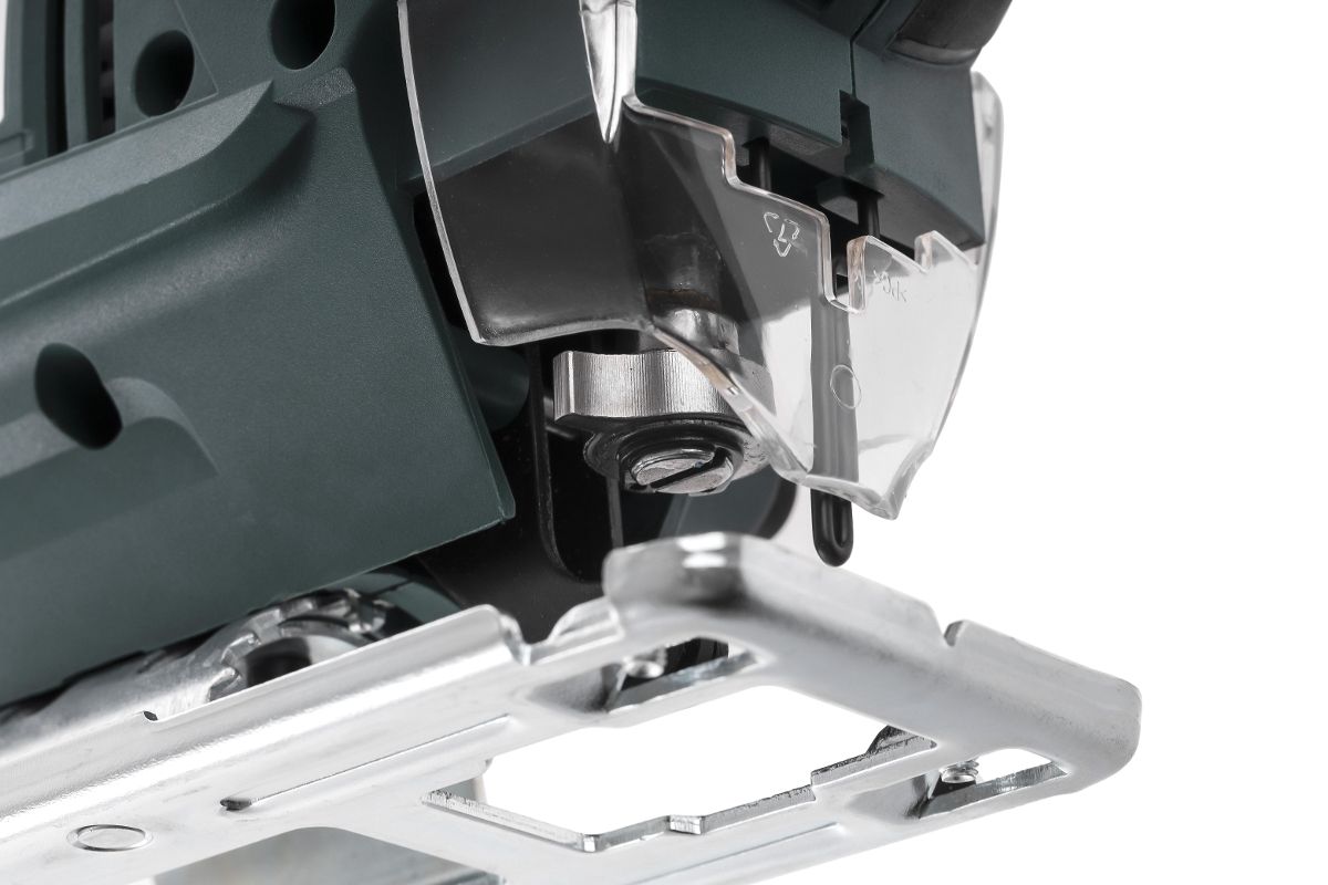Производительный электролобзик оснащен системой бесключевой фиксации полотен, что сокращает время и усилия на замену пилки. Функция маятникового хода в сочетании с регулировкой оборотов позволяет оптимизировать скорость и качество пропила. Конструкцией предусмотрена возможность фиксации подошвы под углом до 45 градусов в обе стороны.