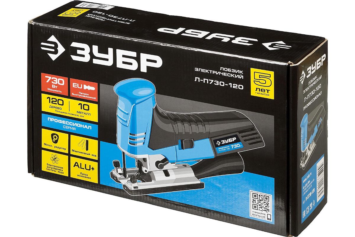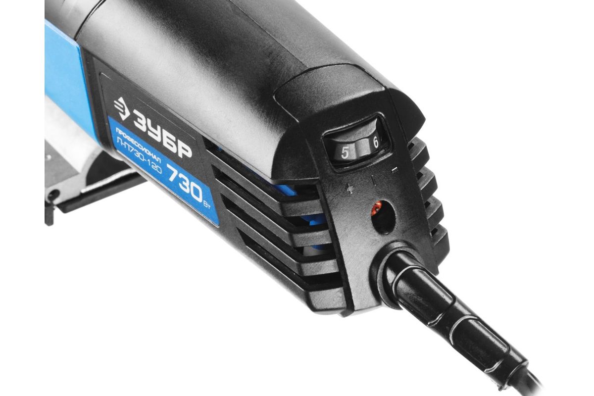Лобзик Зубр ПРОФЕССИОНАЛ Л-П730-120 позволяет выполнять как быстрое, так и чистовое пиление. На долгий срок службы влияют: металлический редуктор и вентиляционные отверстия (охлаждают наиболее нагреваемые части). Мягкая накладка на рукоятке способствует эффективному гашению вибрации.