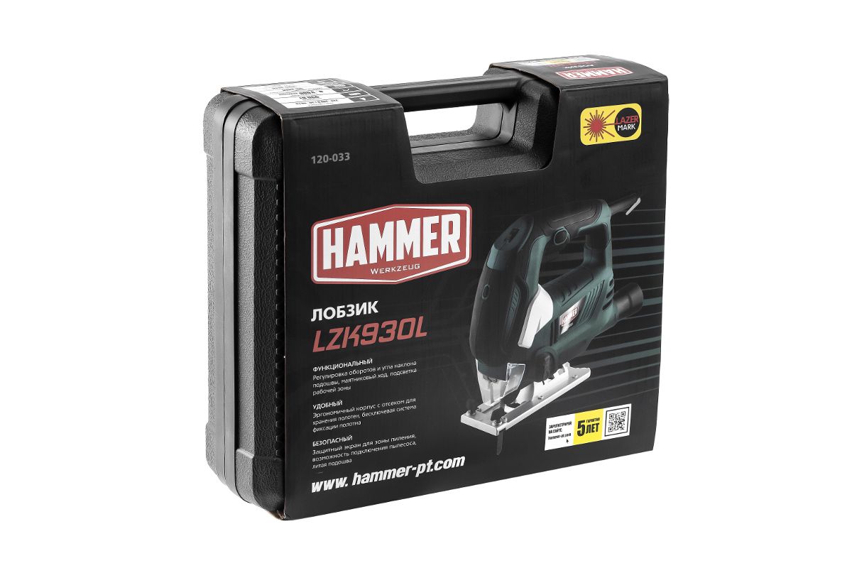 Лобзик Hammer LZK930L 930Вт 0-3000ход/мин 100мм-дер 10мм-мет маятник в кейсе