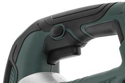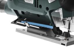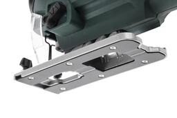 Мощный и производительный электролобзик. Прочная литая подошва усточива к механическим повреждениям, также предусмотрена возможность ее фиксации под углом до 45 градусов в обе стороны. Система бесключевой фиксации полотен сокращает время и усилия на замену пилки. Функция маятникового хода в сочетании с регулировкой оборотов позволяет оптимизировать скорость и качество пропила. Лазерная направляющая повышает точность распиловки. Поставляется в прочном кейсе.