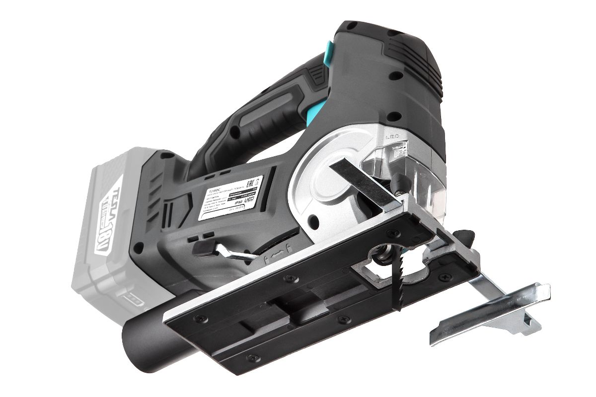 Аккумуляторный лобзик TJ18DC оснащен металлическим редуктором для улучшенного теплооотвода и и повышения прочности конструкции. Литая подошва стойко сопротивляется механическим повреждениям. Система бесключевой фиксации полотен сокращает время и усилия на замену пилки. Функция маятникового хода в сочетании с регулировкой оборотов позволяет оптимизировать скорость и качество пропила. Регулировка положения подошвы позволяет производить распил под углом до 45 градусов.