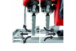 Прочная металлическая опора гарантирует точный контроль над инструментом. Система SDS позволяет устанавливать пильные полотна без использования инструмента и делает их замену быстрой и удобной. Кроме того, лобзик Einhell TE-JS 100 имеет разъем, через который к нему можно подключать пылеудаляющее устройство для работы без опилок и строительного мусора.