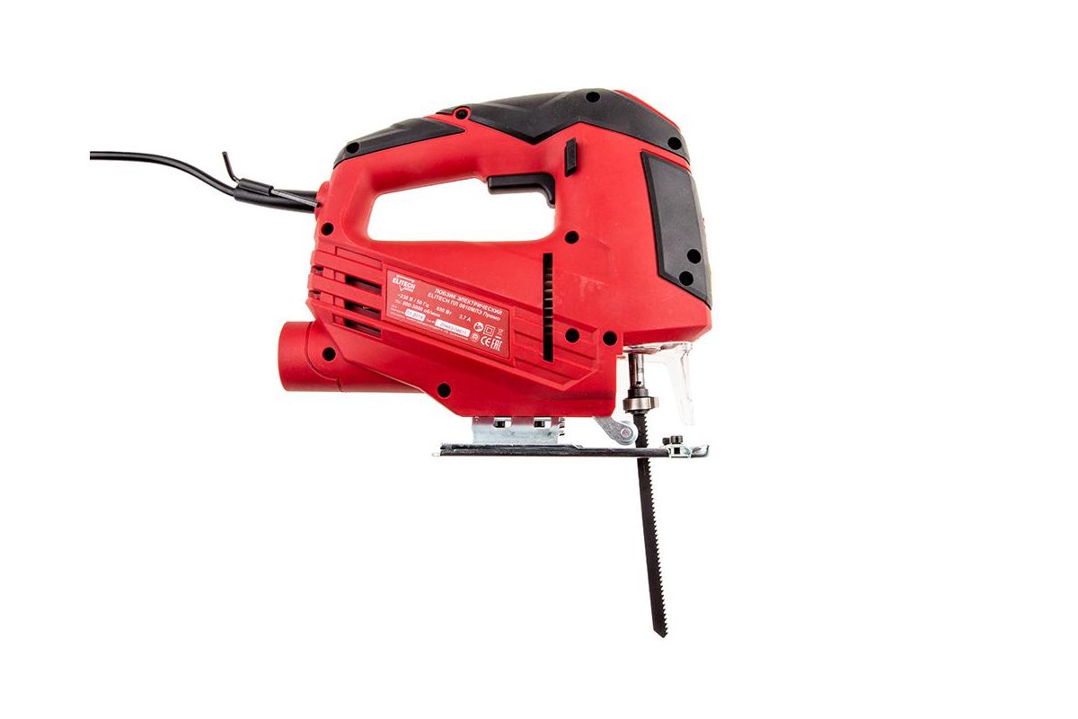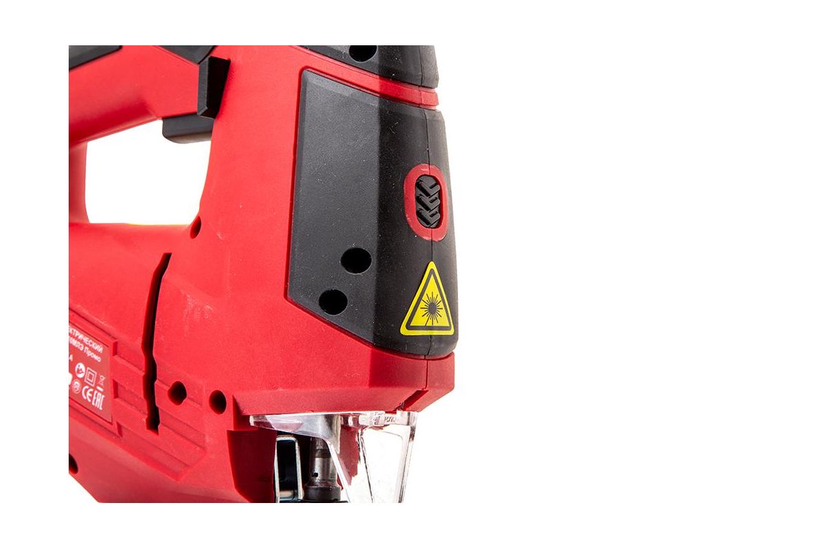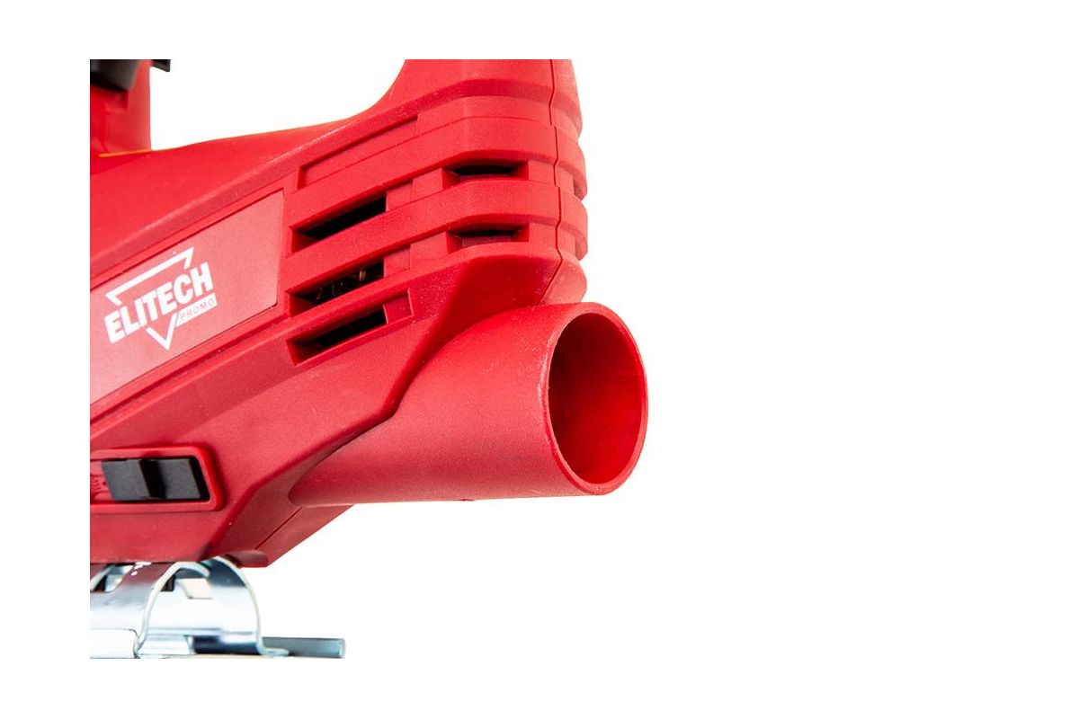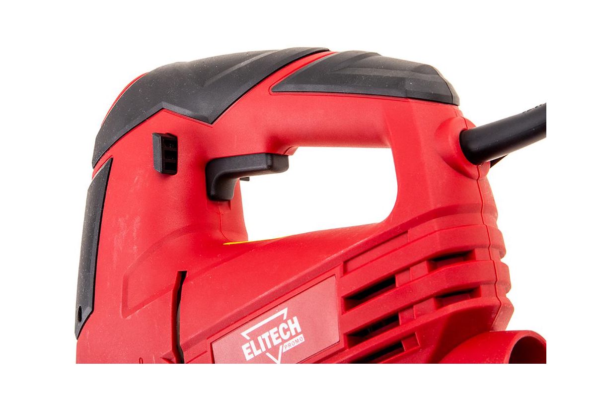 - Нескользящая накладка рукоятки для надежного захвата лобзика Elitech ПЛ 0810МЛЭ Промо;