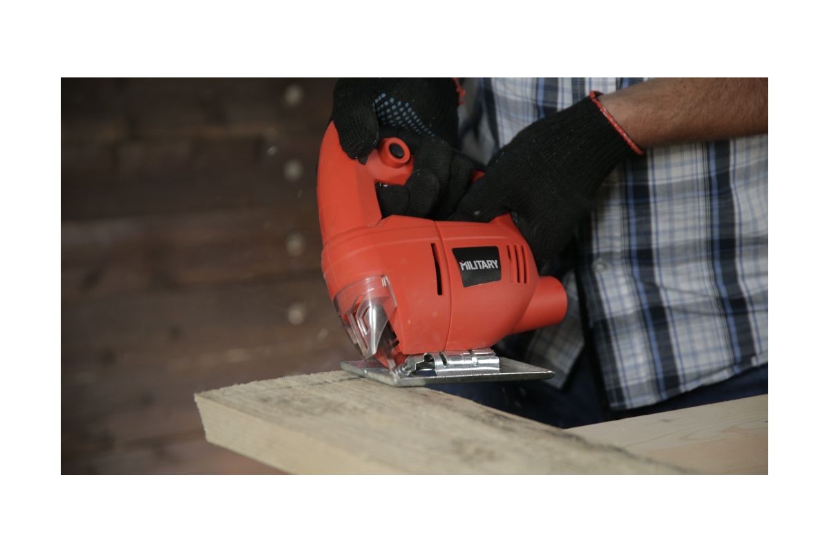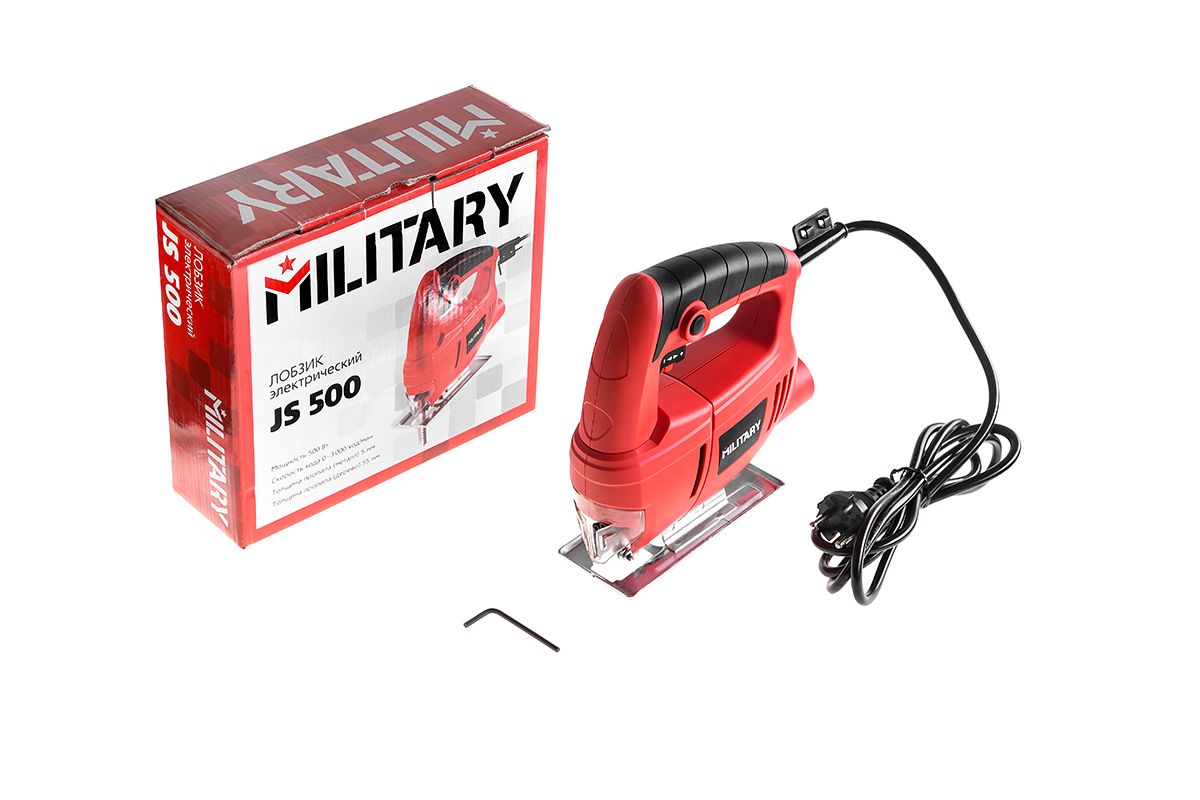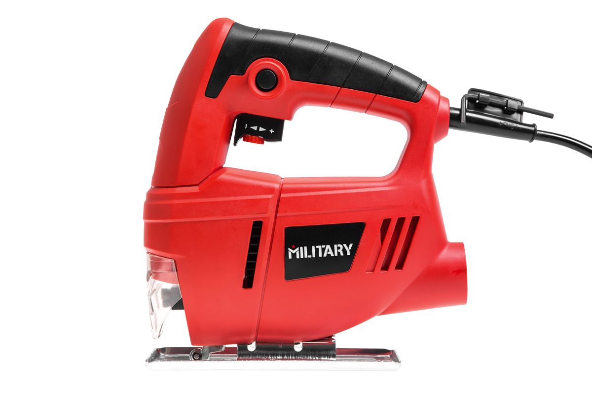 MILITARY JS500 – лобзик для домашнего мастера. Пилит дерево, металл, пластик, ламинат и другие материалы. Делает распилы вдоль, поперек и под углом.