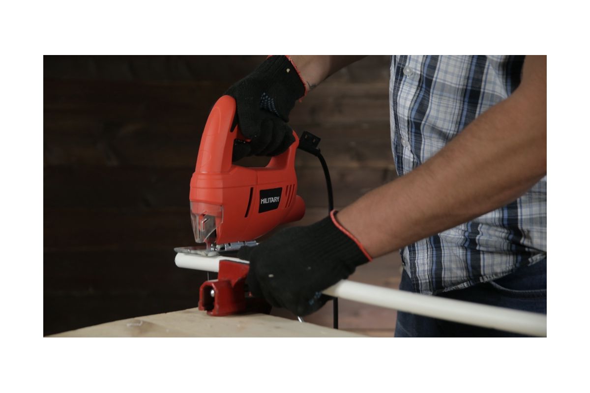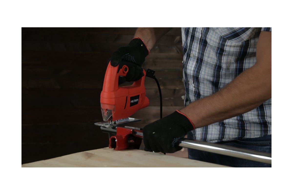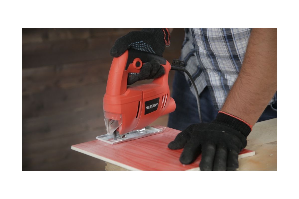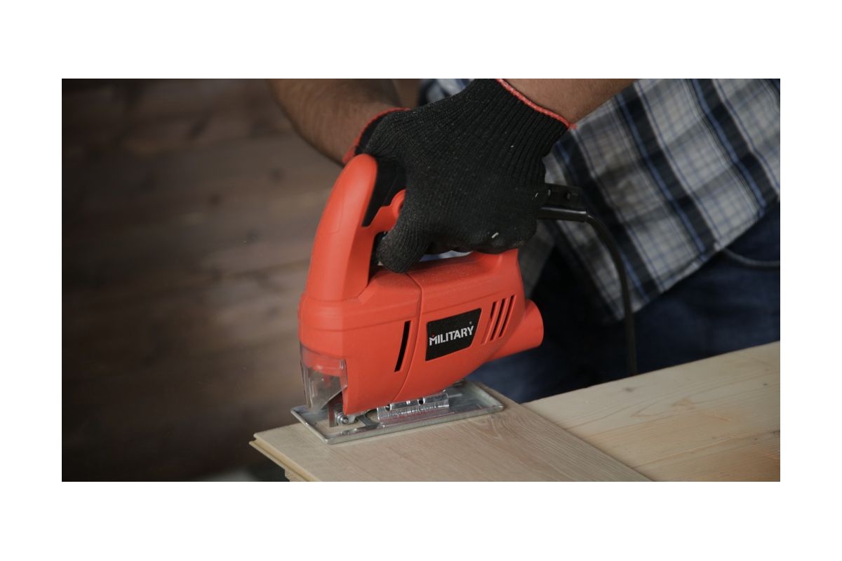 MILITARY JS500 – лобзик для домашнего мастера. Пилит дерево, металл, пластик, ламинат и другие материалы. Делает распилы вдоль, поперек и под углом.