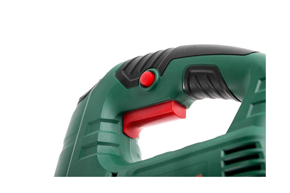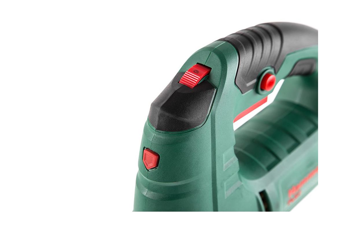 Частота ходов штока – до 3000 ход/мин. С помощью регулятора скорость можно настроить для работы с материалами разной плотности.
