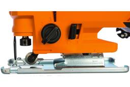 Маятниковый ход пилки увеличивает скорость прямого реза. Лобзик быстро справляется с большими объёмами работ по распиловке дерева.