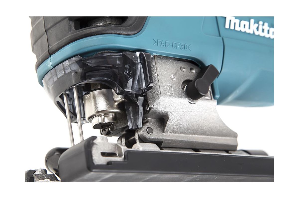 - Для поддержания рабочего места в чистоте, к аккумуляторному лобзику Makita DJV180Z можно подсоединить пылесос;