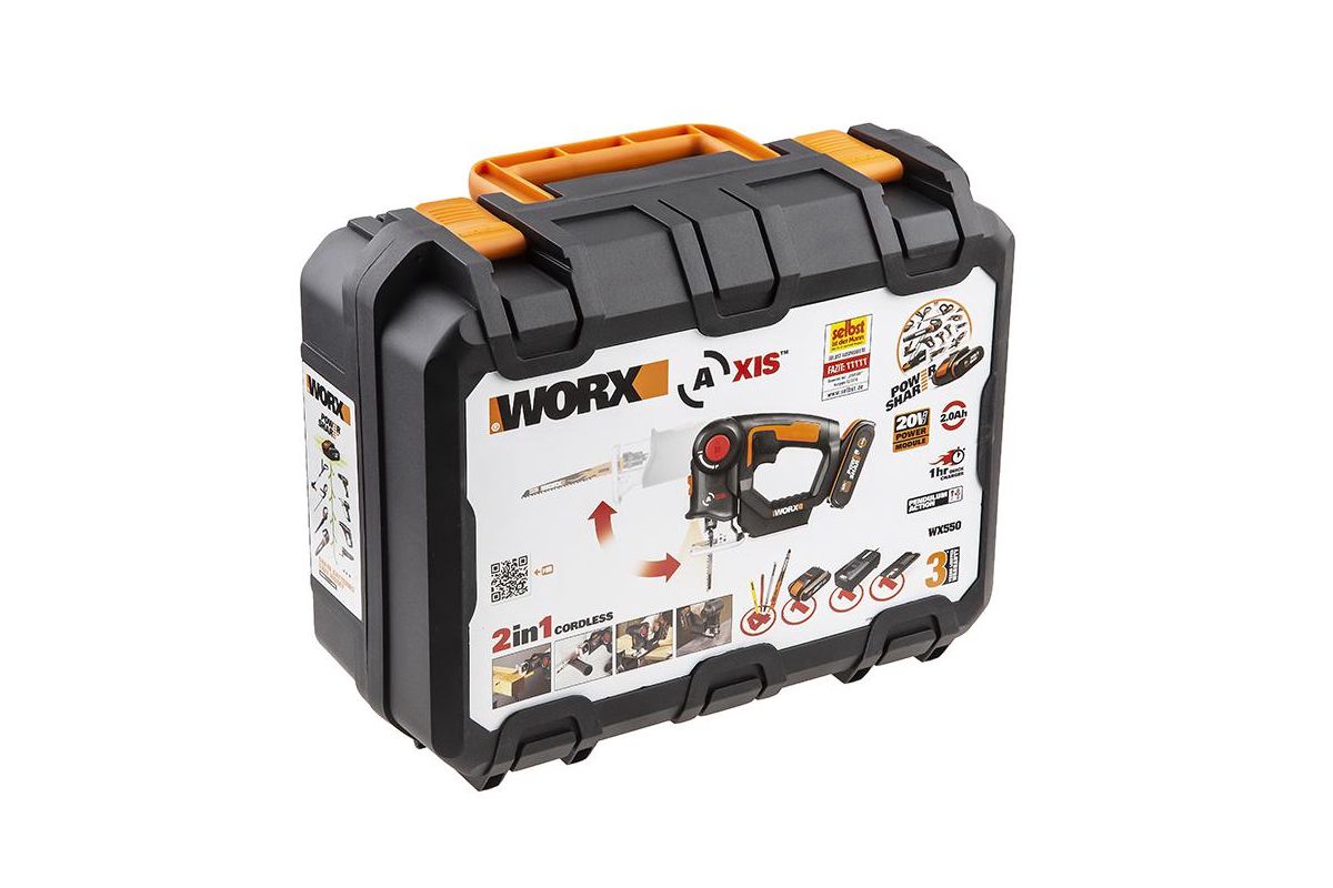 Лобзик аккумуляторный-сабельная пила WORX Axis WX550 20В, 2Ач x1, кейс