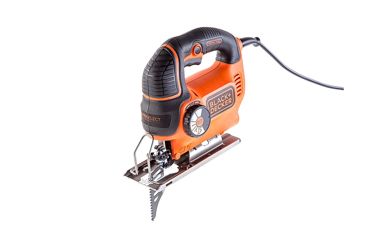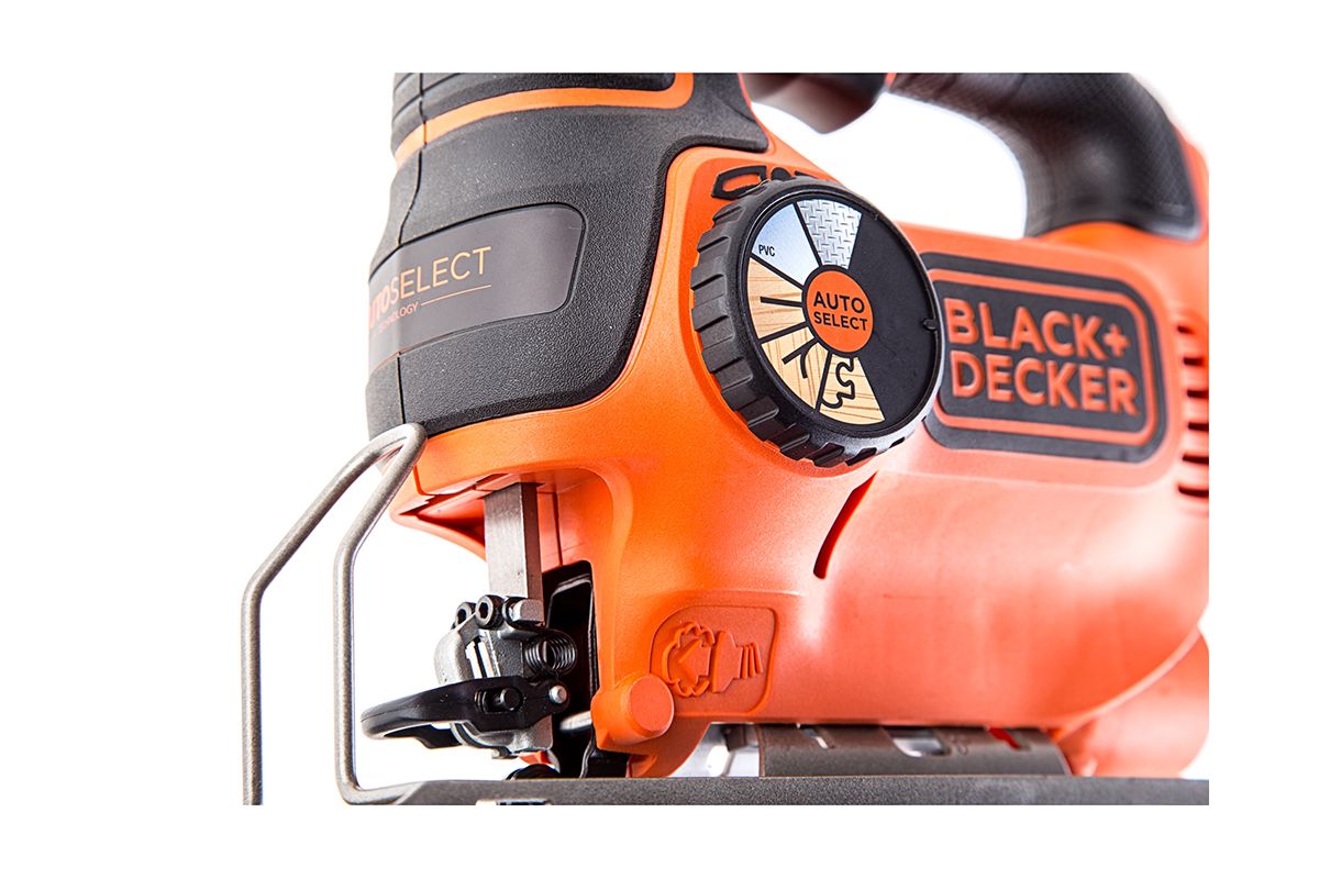 - Прорезиненные накладки повышают уровень комфорта при работе лобзиком Black&Decker KS 901 SEK;