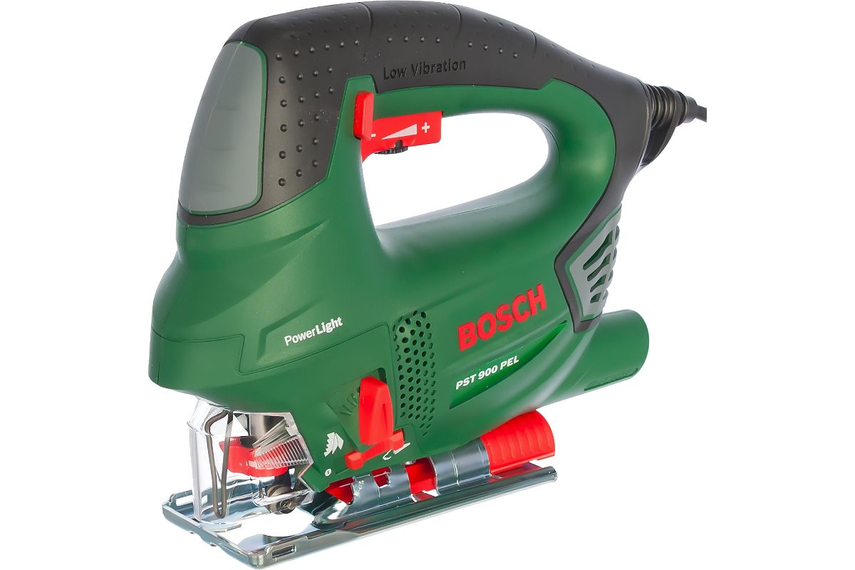 BOSCH PST 900 PEL – электрический лобзик. Мощность 620 Вт. В комплект входит набор оснастки из 10 пилок. Подходит для прямых и продольных резов, распиловки под углом.