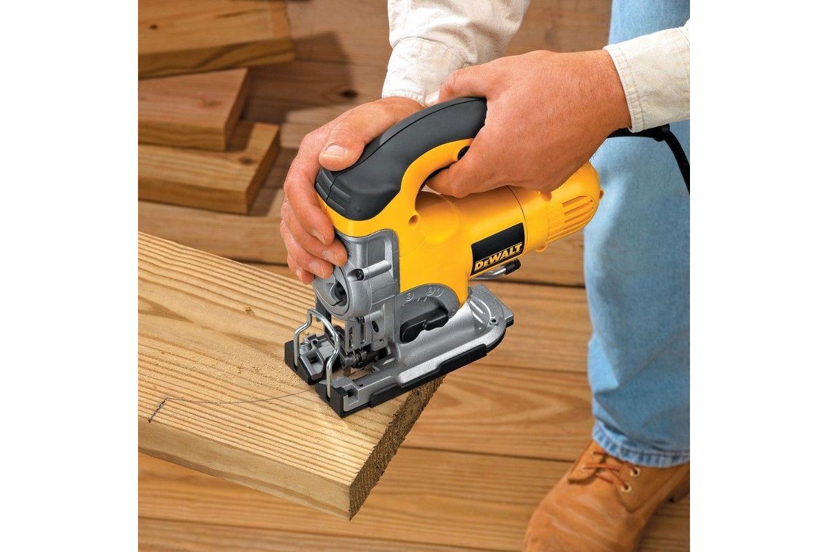 Современный функциональный лобзик с верхней рукояткой DEWALT DW331KT предназначен для выполнения сложных пропилов. Преимуществом данной модели является антивибрационная система AVC, снижающая уровень вибрации и обеспечивающая комфорт во время использования. Корпус отличается эргономичностью и удобным хватом, прорезиненная рукоятка увеличивает контроль инструмента оператором. Наличие бесключевого механизмы смены пилки минимизирует время на подготовку инструмента к работе. Плавный пуск и электронная регулировка скорости позволяют поддерживать оптимальную скорость движения пилки, а также точность начального реза.