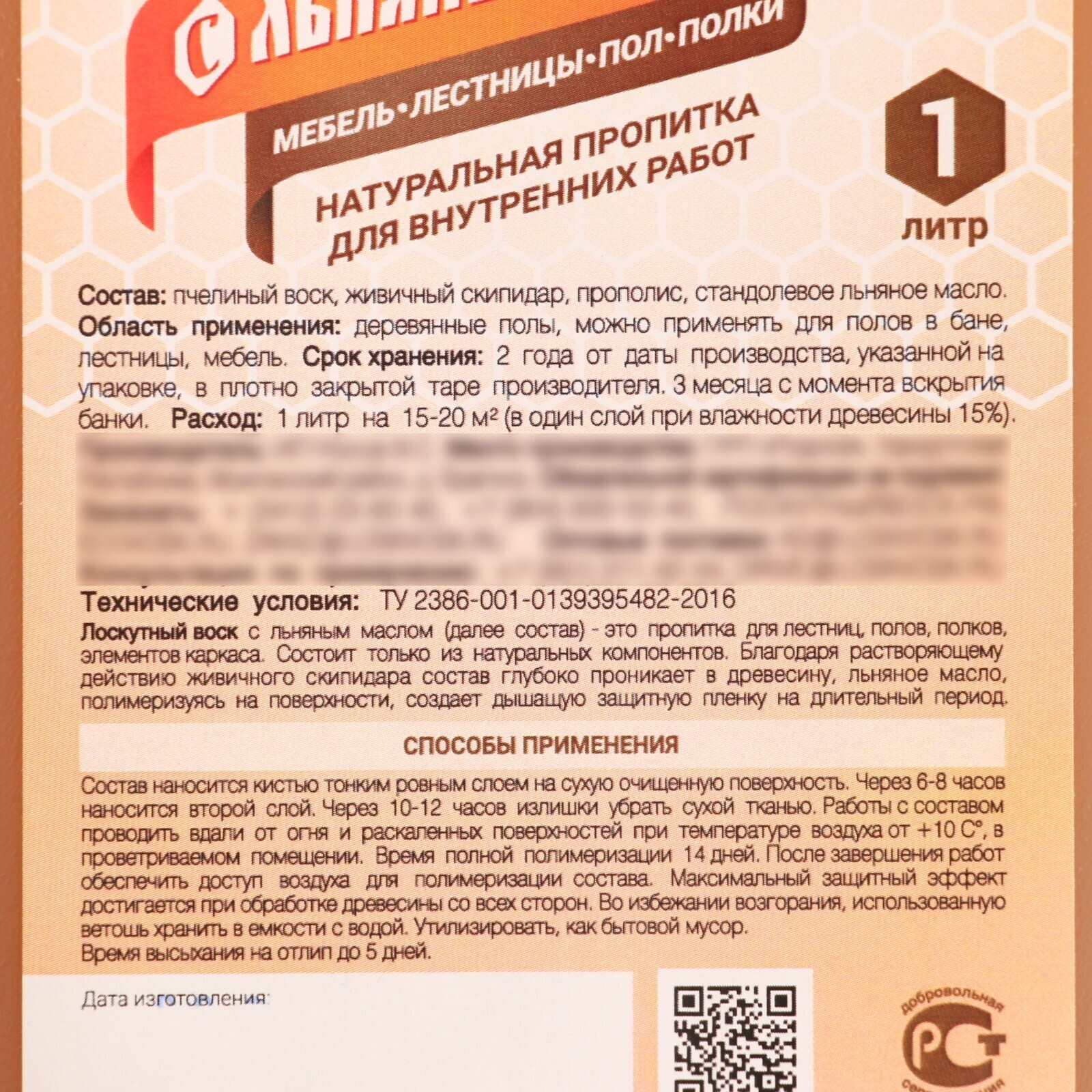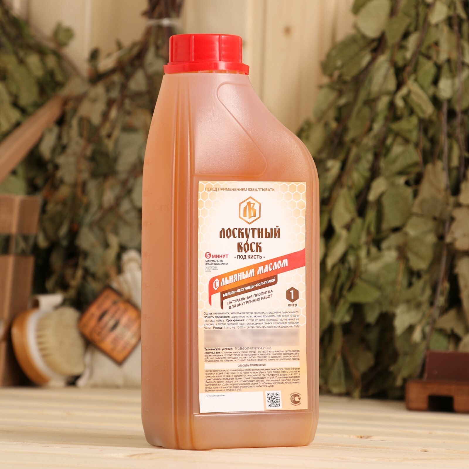 Влаго-биозащитная пропитка "Лоскутный воск" "под кисть", 1л, с льняным маслом