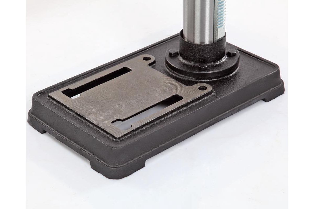 - Рабочий стол, основание станка и корпус сверлильной головки выполнены из чугуна;