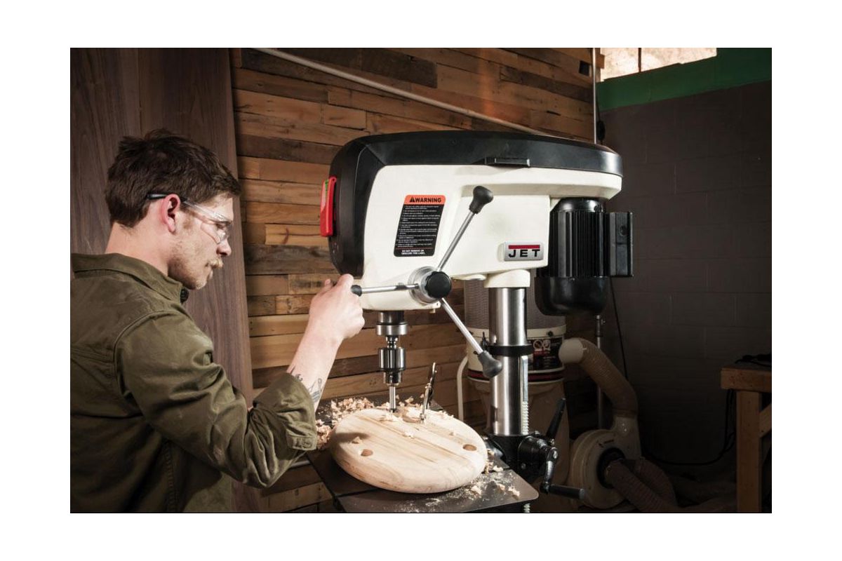 Jet JDP-17 — сверлильный станок, основная особенность которого в том, что он спроектирован специально для деревообработки. Его конструкция не исключает сверления металла, но имеет усовершенствования, важные в столярном и плотницком деле, что делает станок по-настоящему универсальным.
