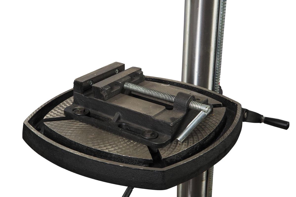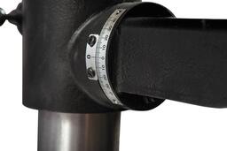 Рабочий стол поворачивается на штанге станка. Угол наклона определяется по градусной шкале сбоку.
