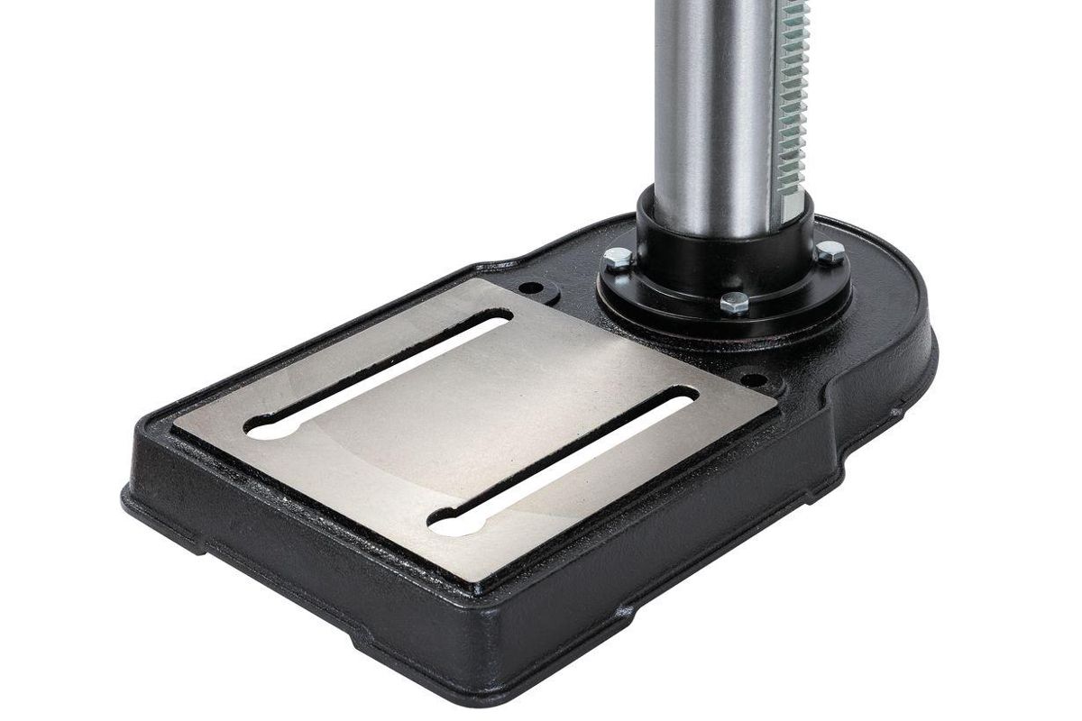 - Станок имеет устойчивое чугунное основание размером 205 x 205мм, в котором предусмотрены 2-Т образных паза с шириной 16мм, для закрепления заготовки прихватами или другими зажимными приспособлениями;