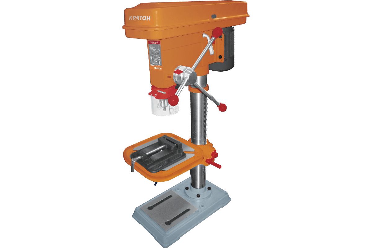Малогабаритный сверлильный станок КРАТОН DM-16/550 рассчитан на небольшие объемы работы (в быту или мастерской). С его помощью можно сверлить, развертывать и зенкеровать отверстия в древесине, пластике и металле. В зависимости от плотности материала частоту вращения можно регулировать (180–2770 об/мин). Максимальный ход шпинделя — 85 миллиметров. Модель оснащена двигателем на 550 Вт и сверлильным патроном В16 (1,5-16 мм). Станок комплектуется тисками для надежной фиксации детали. Вес модели — 60 кг.
