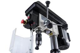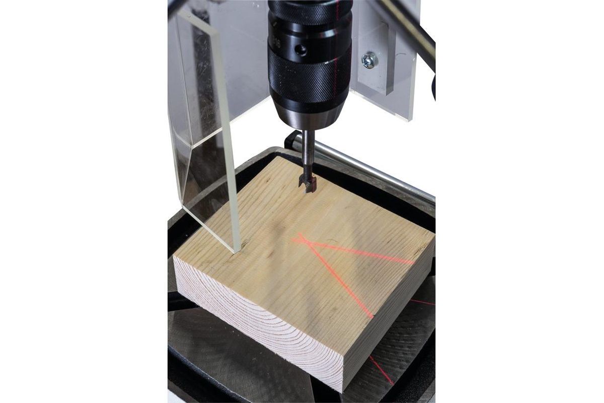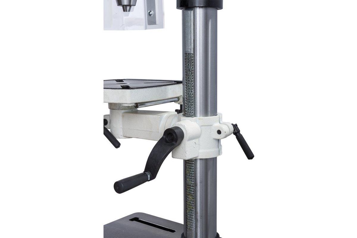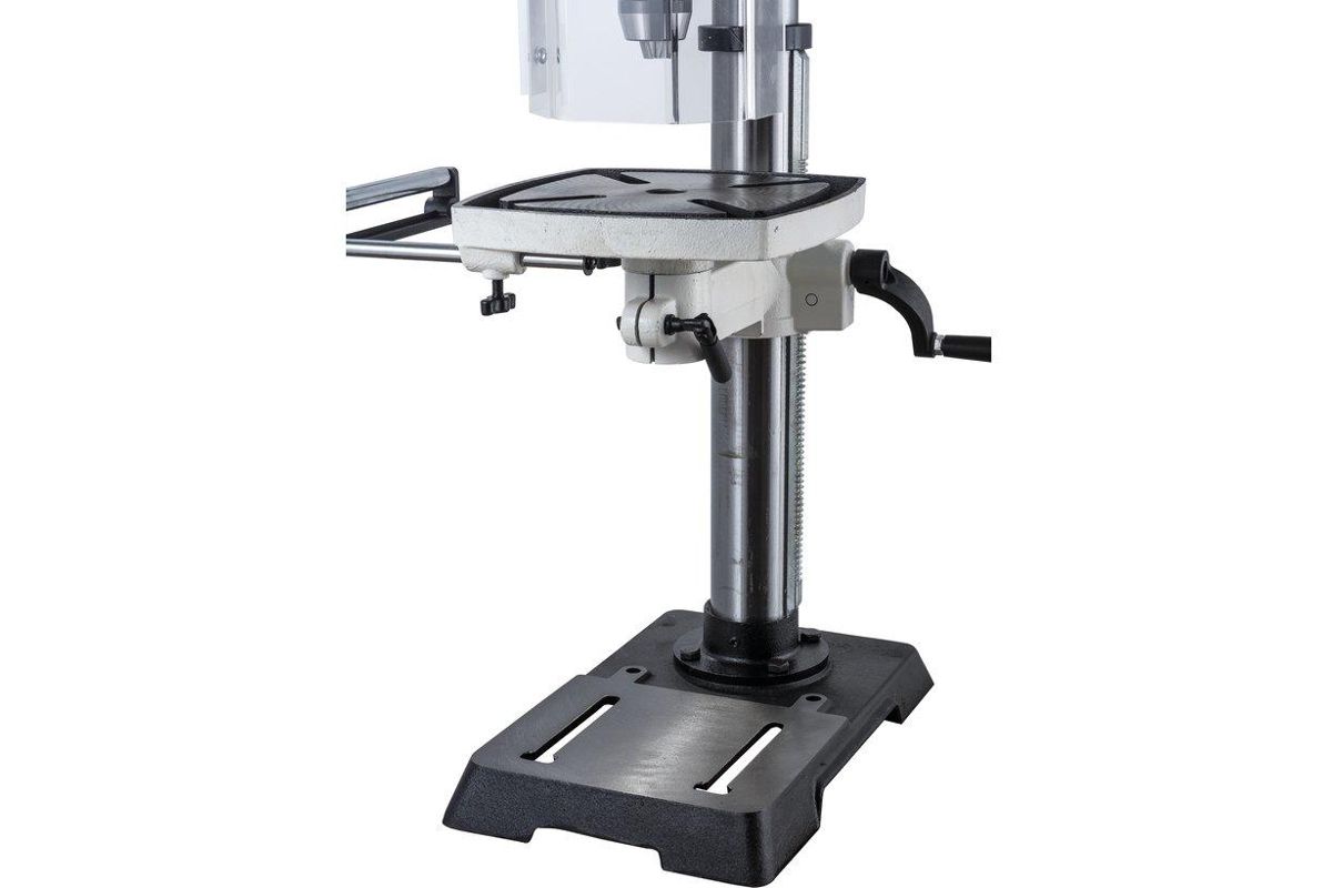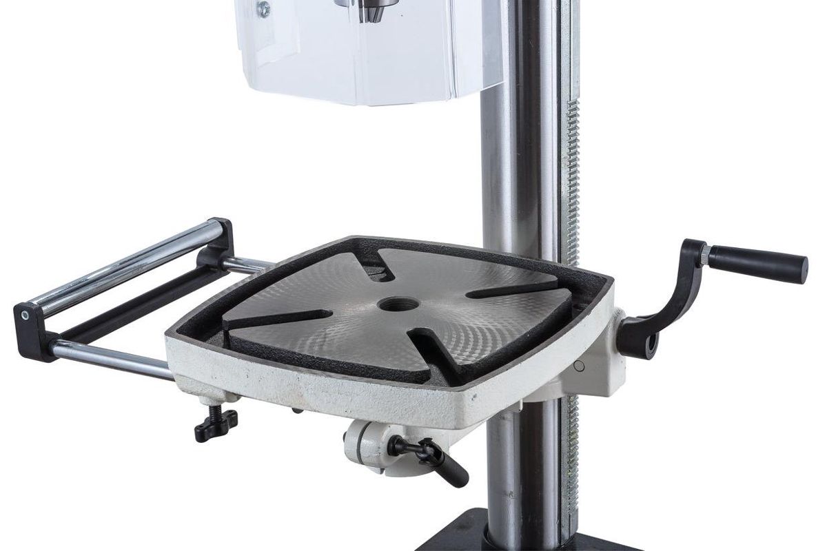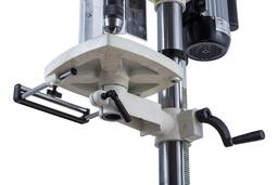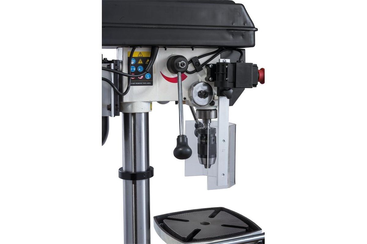 Настольный сверлильный станок профессионального класса, подходящий для универсального (дерево и металл) применения. Основная отличительная черта этой модели – клиноременный вариатор, позволяющий плавно бесступенчато изменять скорость вращения шпинделя. Такая конструкция механизма ускоряет настройку в зависимости от диаметра сверления: вместо снятия и последующей установки ремня достаточно перевести рычаг, причем делают это, не выключая мотор. При этом фактическая скорость вращения шпинделя будет отображаться на цифровом дисплее, что особенно важно при работе с металлом, когда ограничения по частоте вращения режущего инструмента гораздо более строгие, чем при работе с деревом.