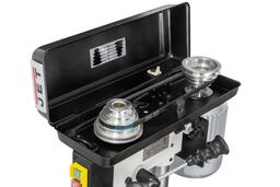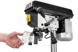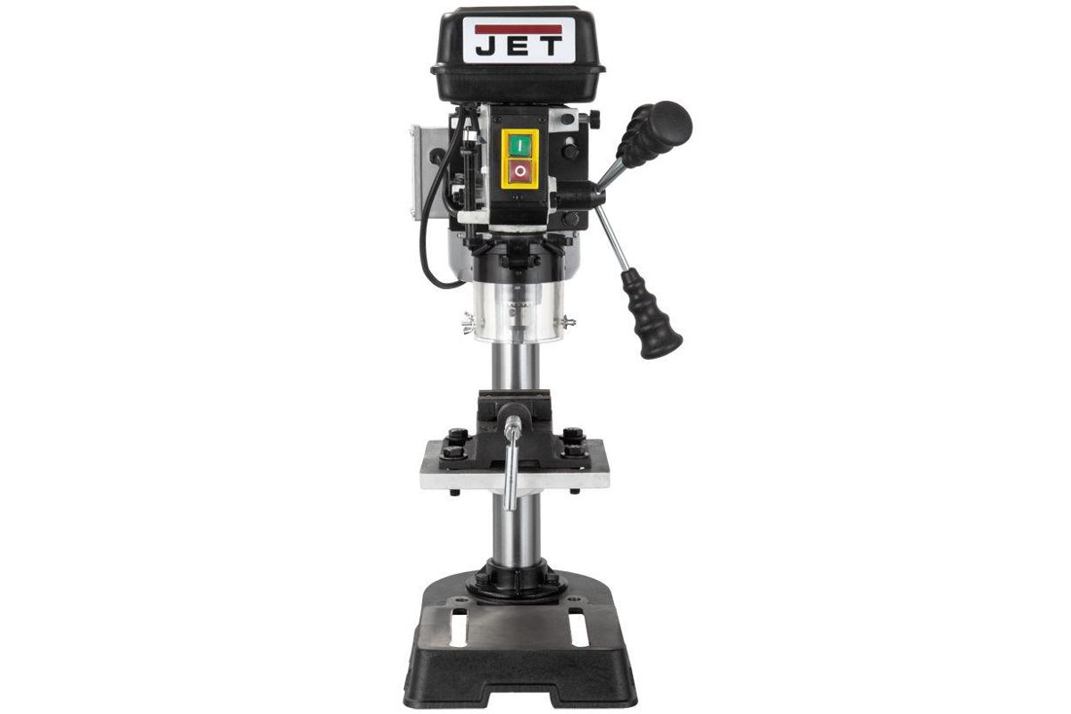 JET JDP-8L — настольный сверлильный станок для бытовых работ по дереву, металлу, пластику. У модели прочный чугунный стол и компактная конструкция. Оператор может легко отрегулировать высоту и наклон стола. Инструмент оснащен шкалой и ограничителем глубины сверления. Диаметр патрона — 13 мм. Максимальная скорость работы — 2650 об/мин.