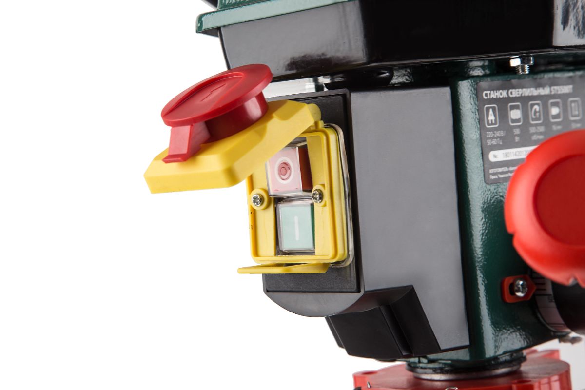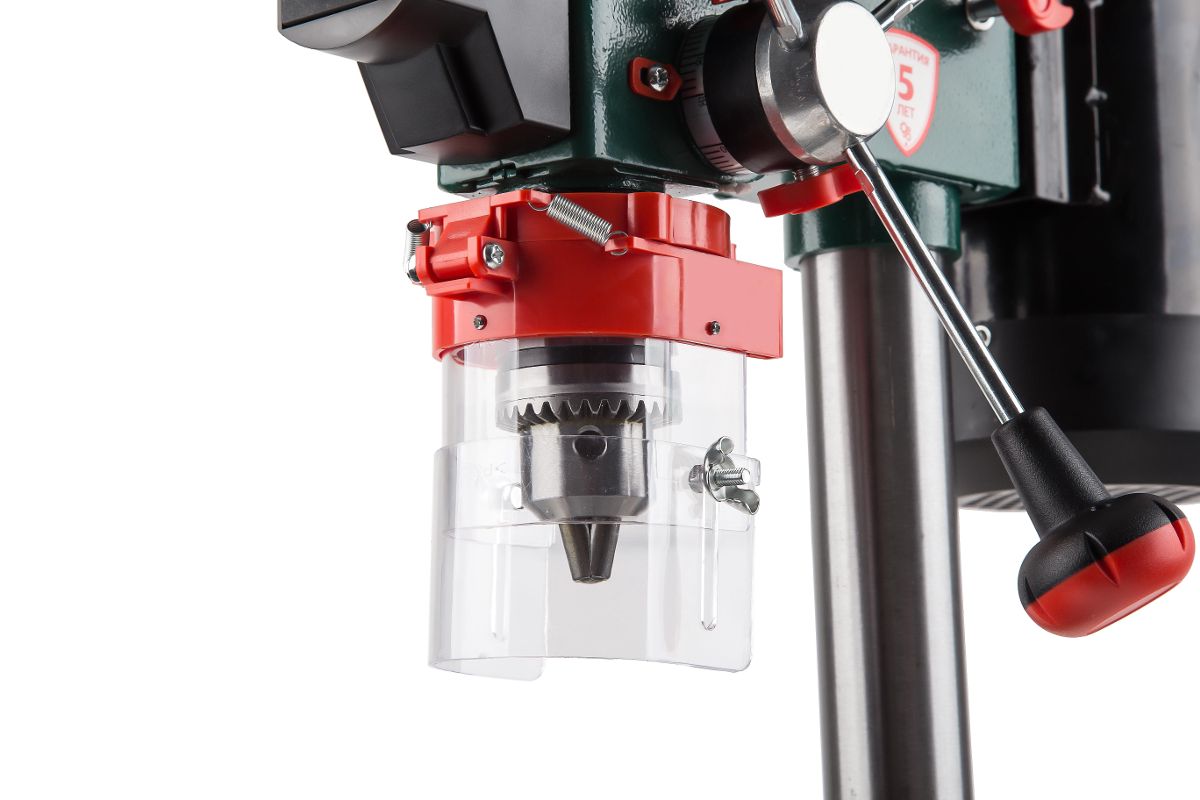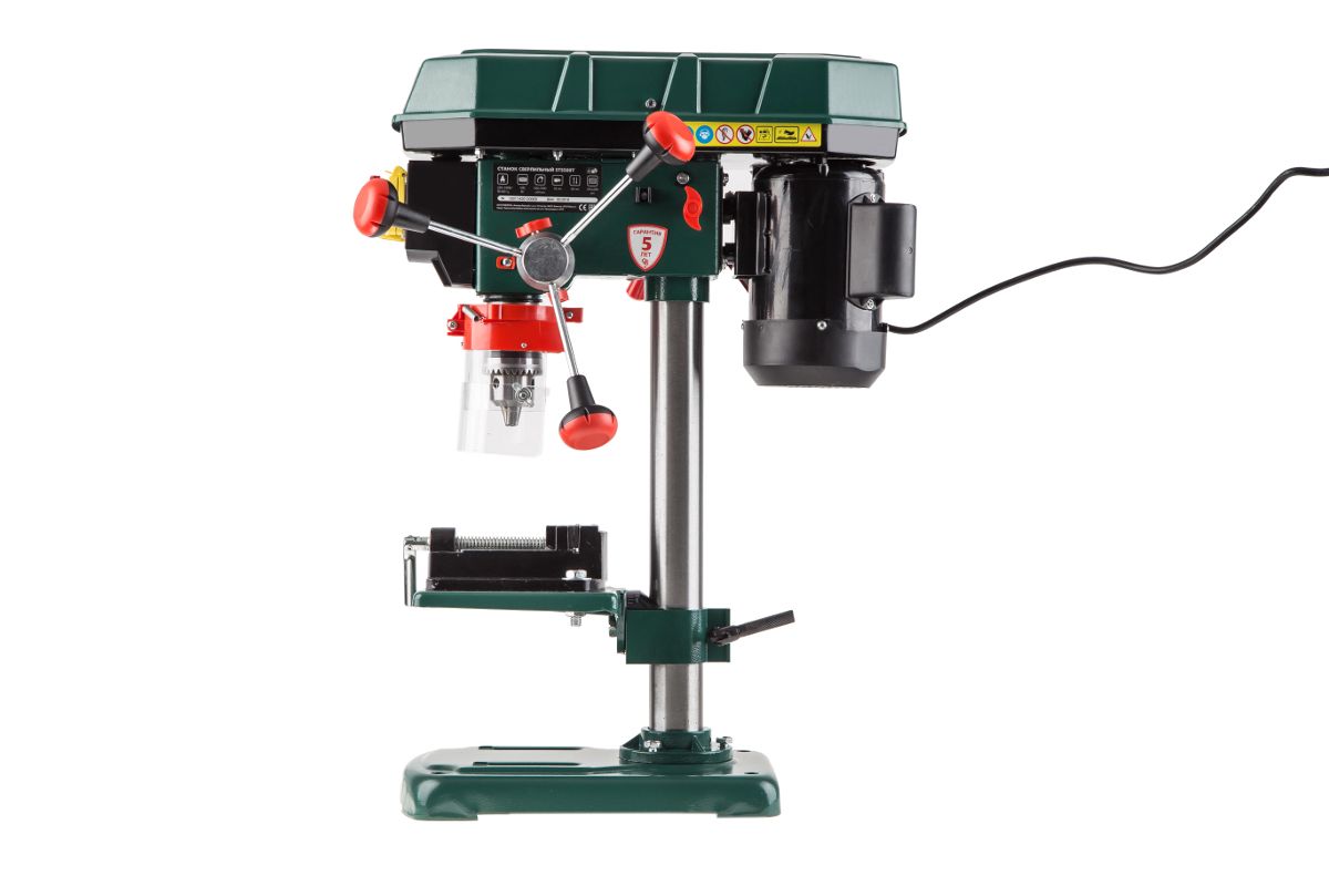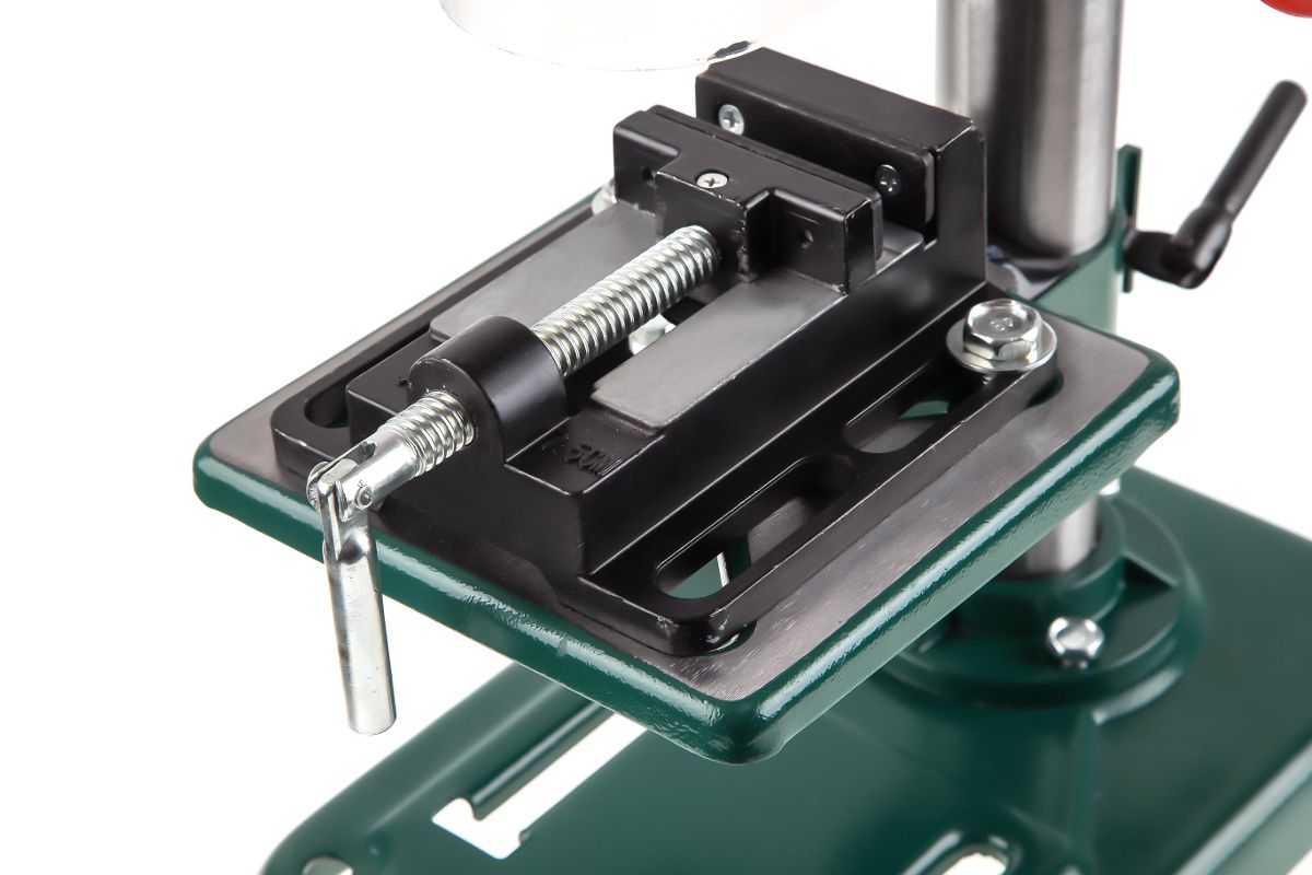 - Сверлильный станок оснащен двигателем мощностью 500 Вт и 16 мм ключевым патроном. Для удобства позиционирования заготовки в комплекте предусмотрены станочные тиски. 9 скоростных режимов работы позволяют точно настроить работу станка в зависимости от типа обрабатываемого материала. Для безопасности работы предусмотрен прозрачный экран, защищающий оператора от попадания продуктов сверления. Имеется встроенная защита от перегрузки.