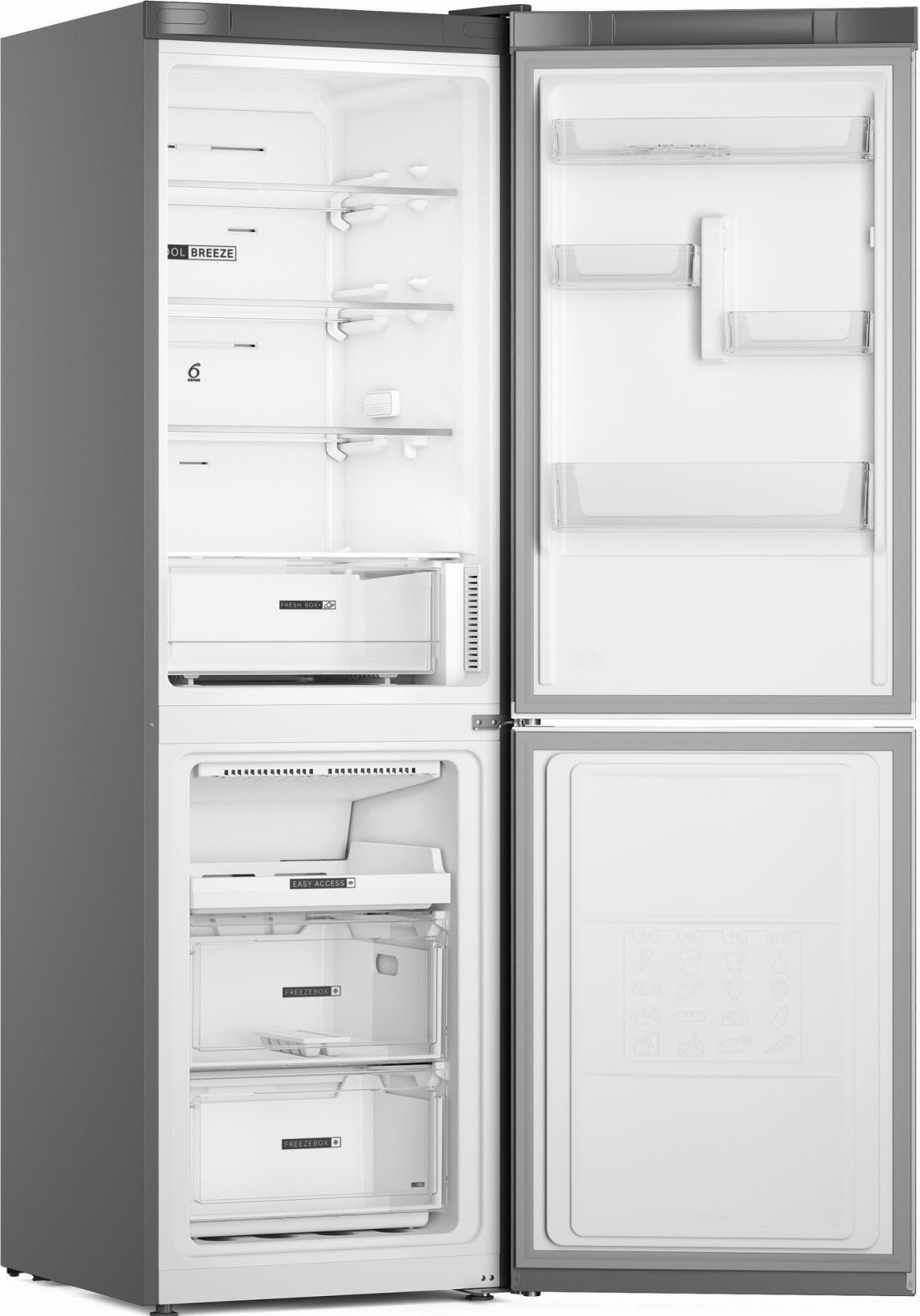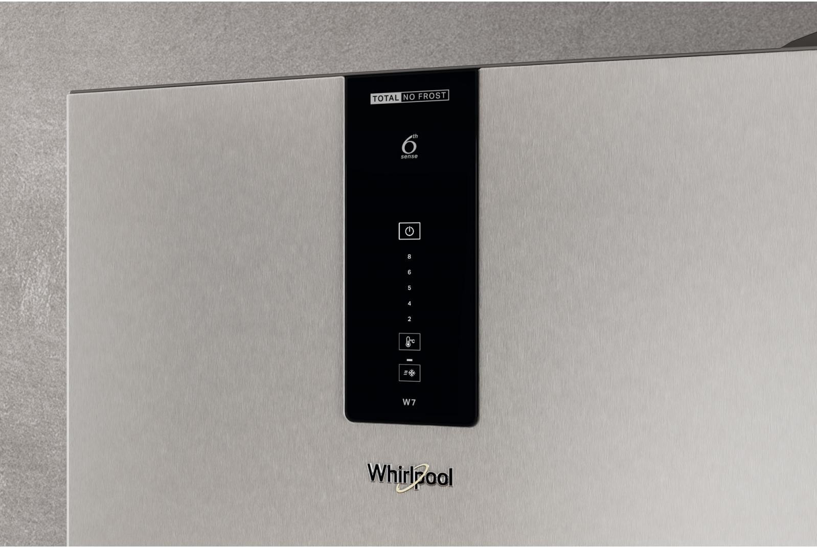 Холодильник Whirlpool у класичному дизайні. Міцні полиці із загартованого скла, зручні дверні корзини забезпечують зручність розміщення усіх продуктів. Система Total No Frost забезпечує ідеальну циркуляцію холодного повітря в обох частинах приладу і таким чином запобігає утворенню льоду. Це створює оптимальні умови для тривалого зберігання їжі.