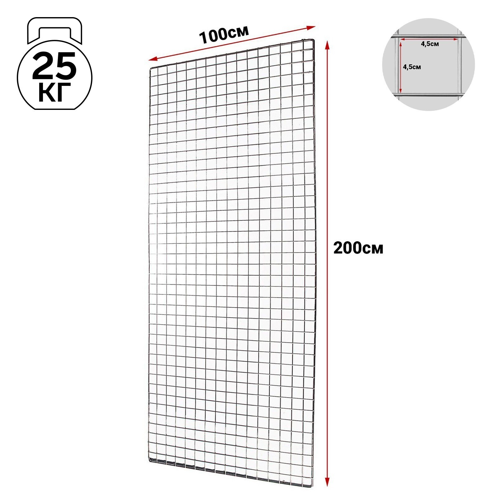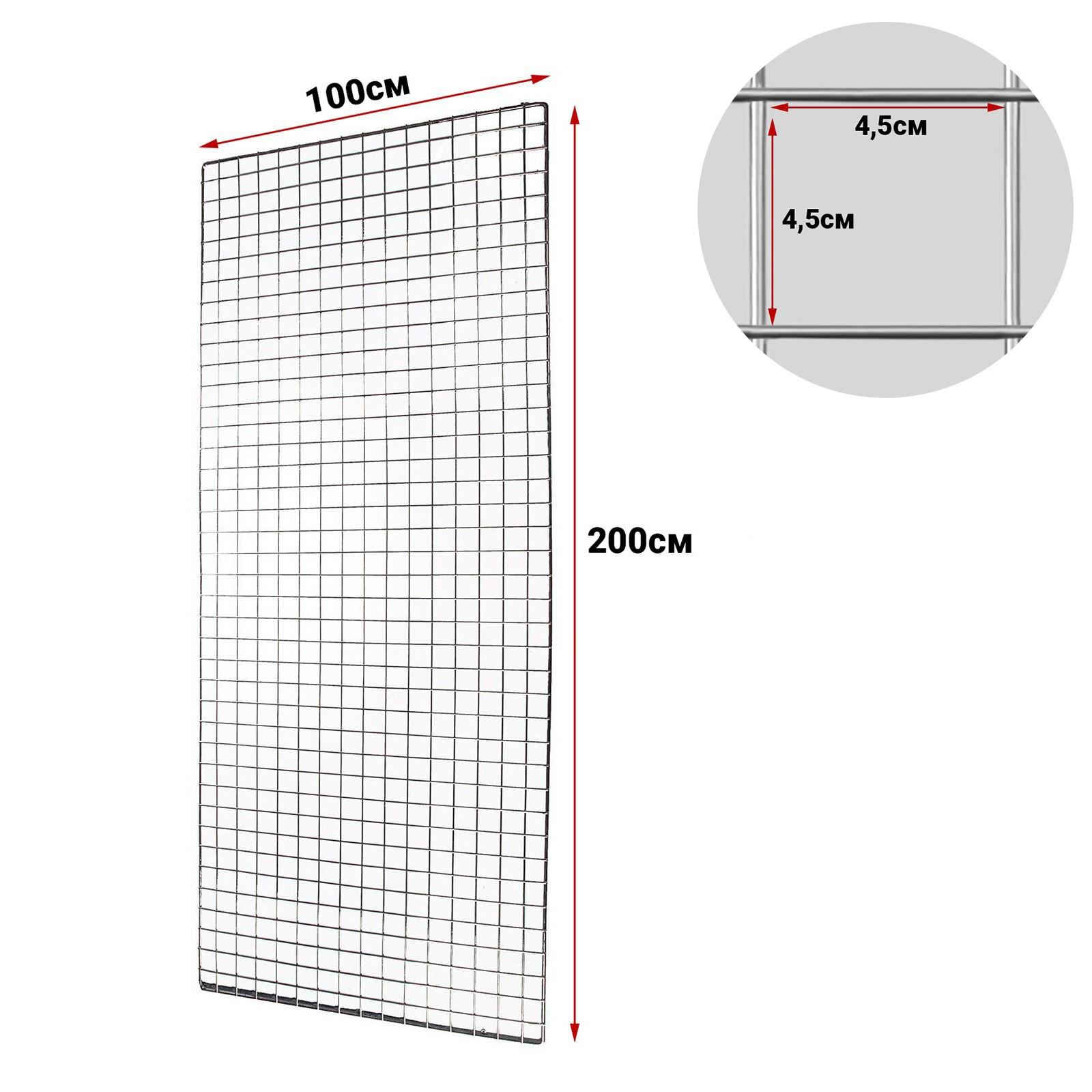 Сетка торговая 100*200, окантовка 6мм, пруток - 4мм, цвет хром (порошковое покрытие)