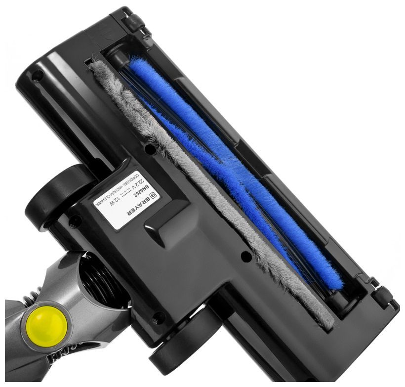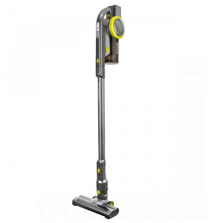 Brayer BR4262 - беспроводной вертикальный пылесос 2 в 1 с максимальной мощностью 200Вт. В качестве пылесборника установлен контейнер объемом 1 л, не требующий периодической замены. Фильтр тонкой очистки улавливает даже мельчайшие частицы пыли. В комплектацию пылесоса входит турбощетка с подсветкой.