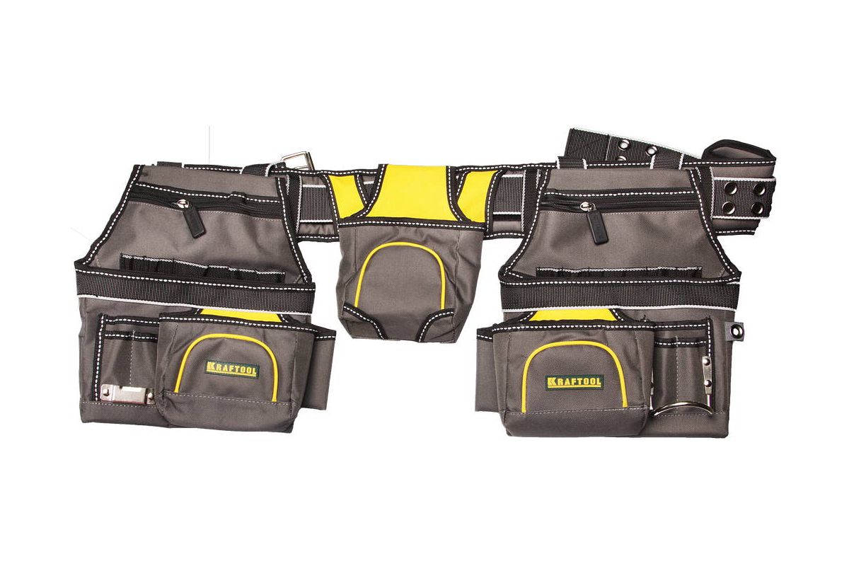 Пояс KRAFTOOL 38742 монтажника industrie 2подвесных подсумка 20карманов 2петли