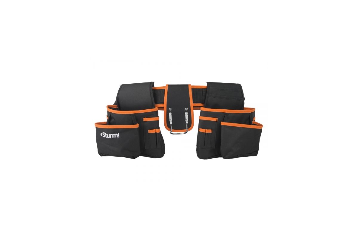 Пояс монтажника STURM! TB0153 жесткая конструкция ремня две кобуры с доп. карманами