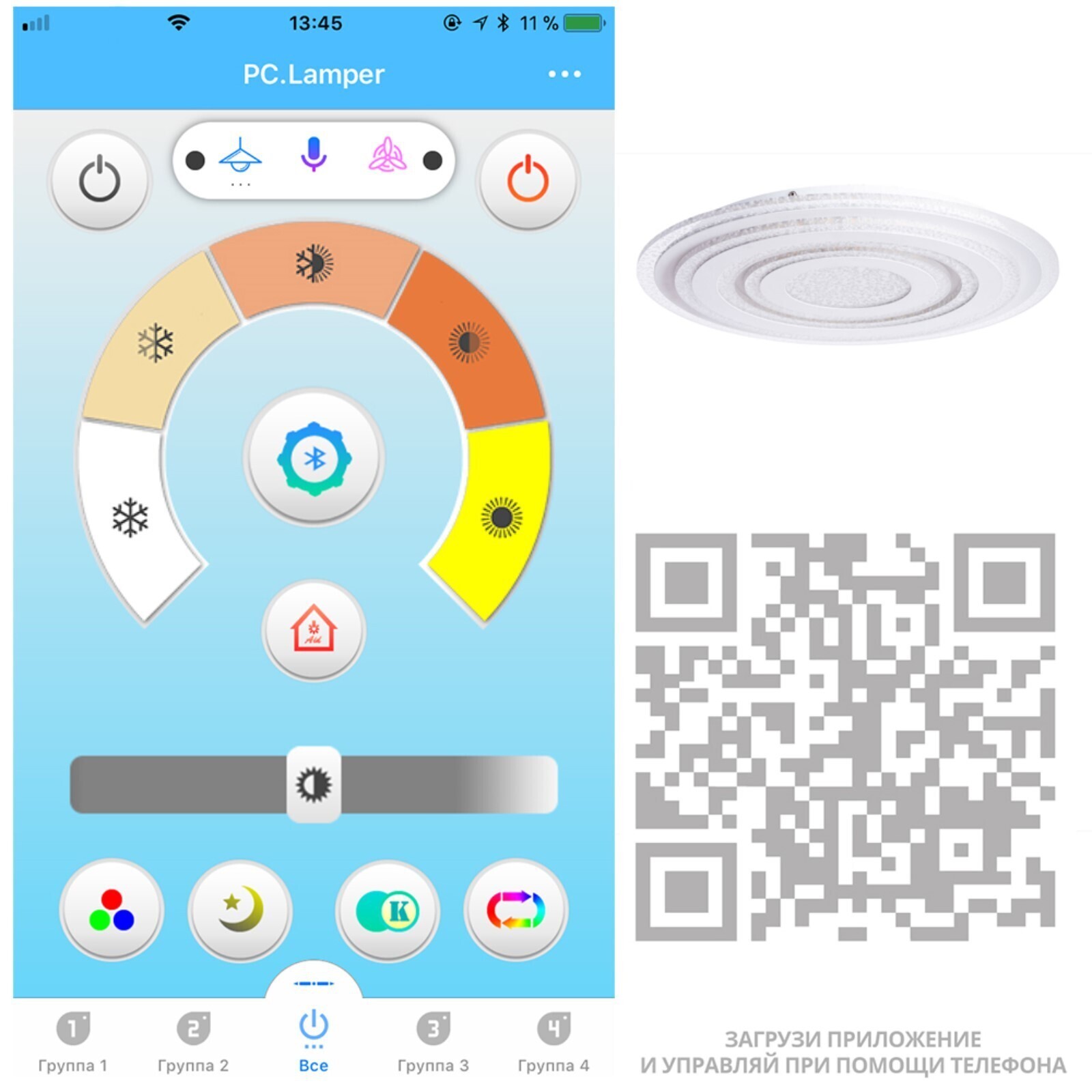• Управление светильником Есть пульт ДУ