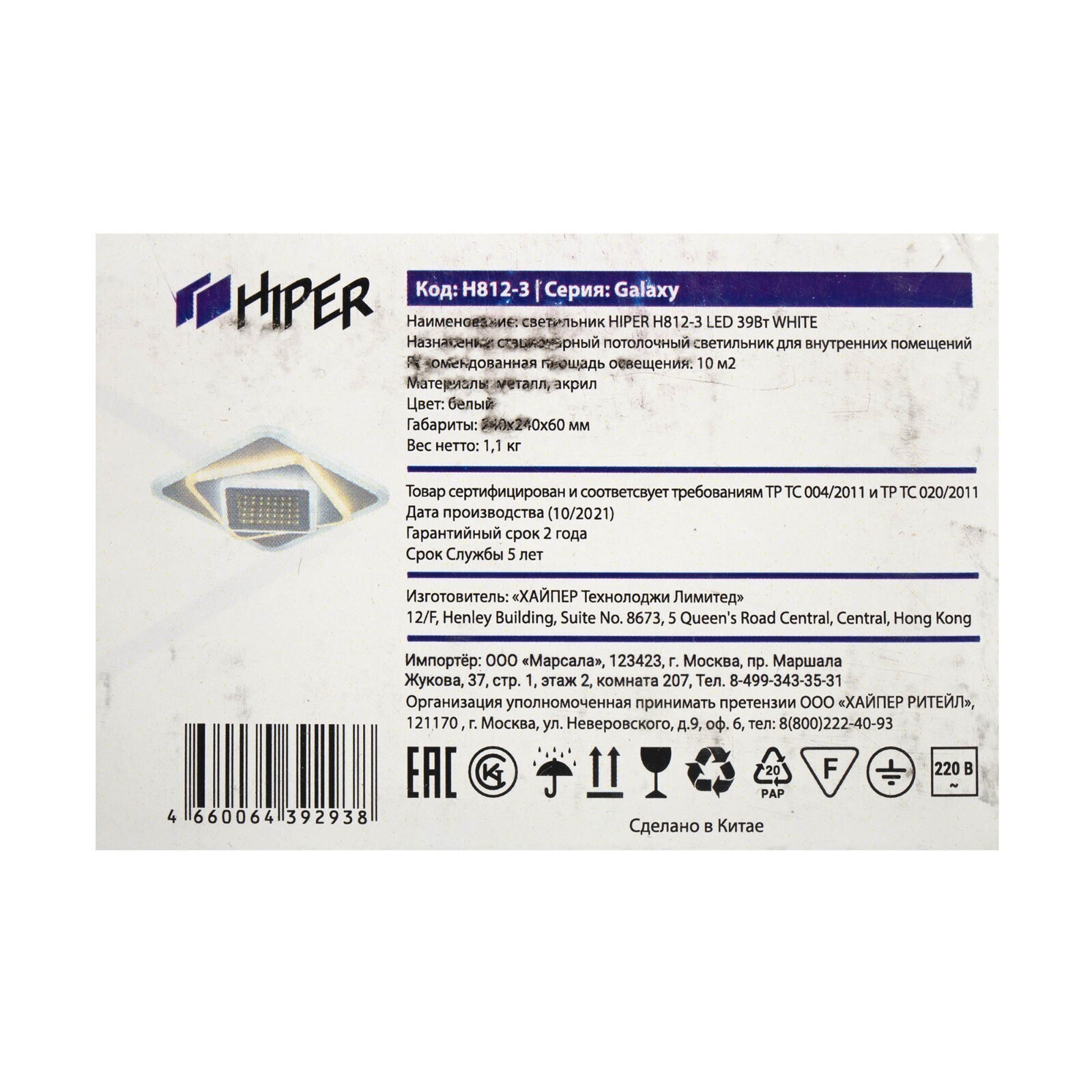 Светильник, 39Вт, LED, 24x24x6 см, цвет белый