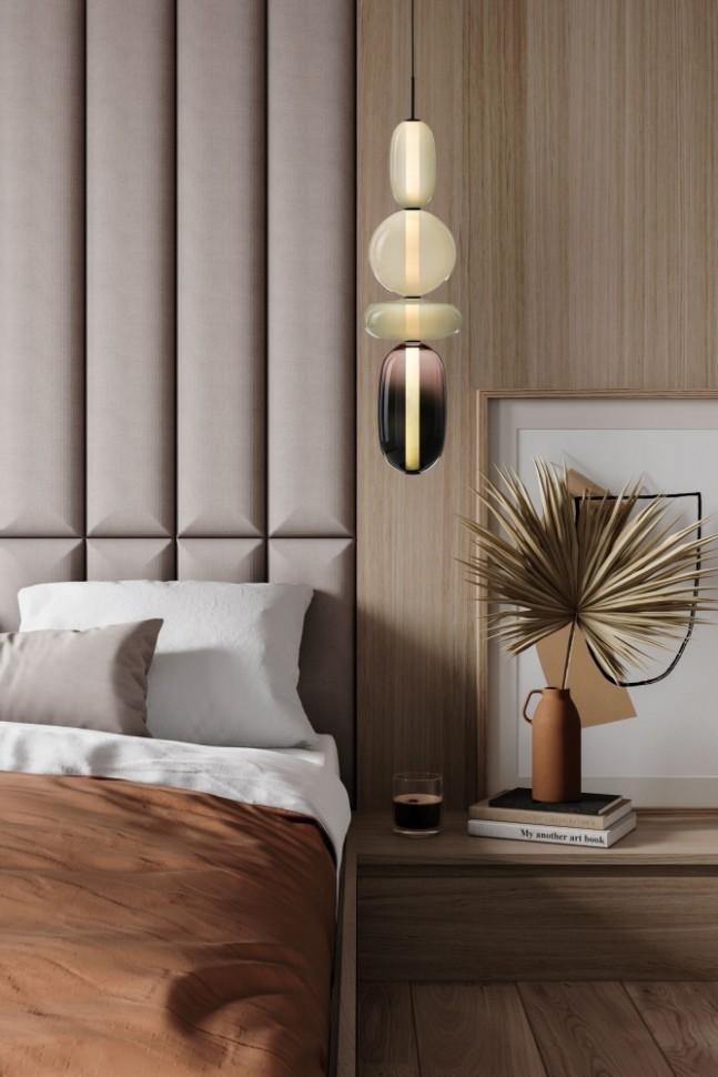 Яркий и необычный подвесной светильник, который можно разместить в спальне, на кухне, в гостиной — в каждом пространстве, где ценят стиль и красоту. Округлые формы и плавные линии дарят пространству гармонию и эстетику. Мягкий рассеянный свет проникает сквозь закаленное стекло и нежно обволакивает комнату. Вам приятно и комфортно рядом с этими светильниками. Что может быть лучше для вашего интерьера? Высота верхнего белого плафона- 165 мм Диаметр среднего верхнего плафона- 200 мм Диаметр белого нижнего плафона- 225 мм, высота- 100 Диаметр фиалетового плафона- 265 мм