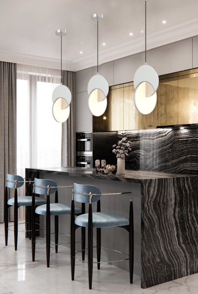 Стильный подвесной светильник станет украшением вашей спальни, кухни, гостиной или детской. Мягкое светодиодное свечение придает пространству атмосферу уюта. Плавные округлые формы создают ощущение умиротворения и гармонии. В серии также есть светильник в золотой отделке. Это значит, что вы сможете подобрать такую модель, которая идеально впишется в цветовое решение вашего пространства.
