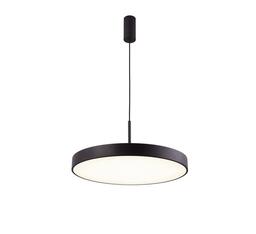 Минималистичный светодиодный подвесной светильник в черном цвете. Только мягкое рассеянное свечение, округлые формы и ничего лишнего. Светильник можно разместить в любом пространстве с квадратурой от 8 квадратных метров. В серии также есть потолочный светодиодный светильник — вместе они создадут необычную композицию в вашем интерьере.