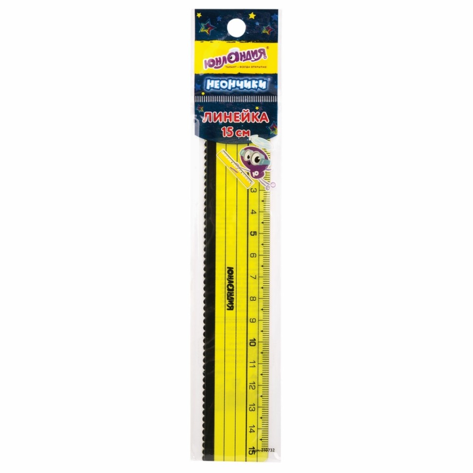 Линейка пластик 15 см ЮНЛАНДИЯ "НЕОНЧИКИ", ассорти, с волнистым краем, 210732 (210732)