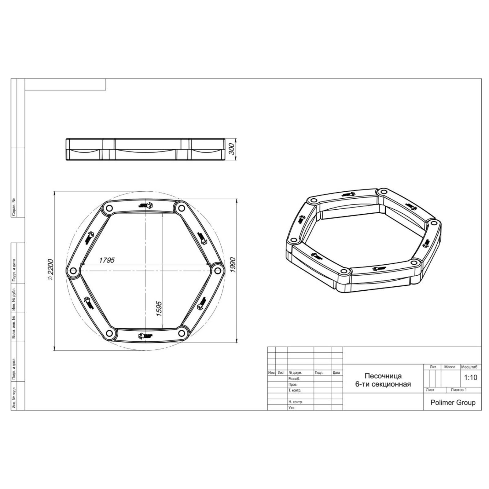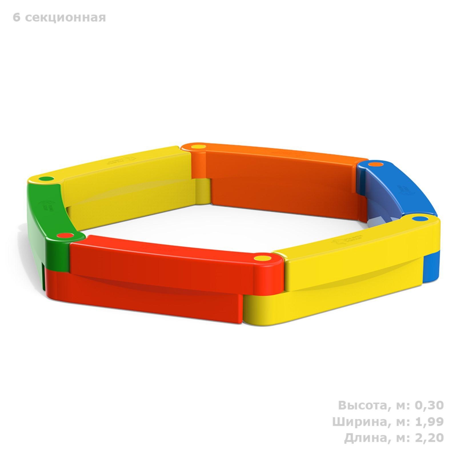 Песочница полиэтиленовая, без крыши, 220 × 199 × 30 см, 6 секций