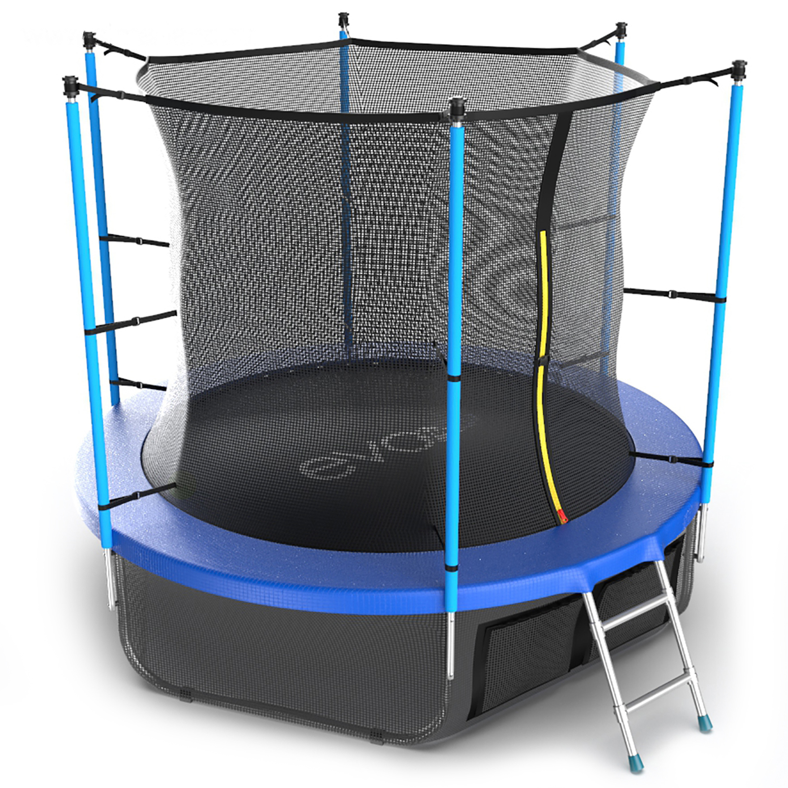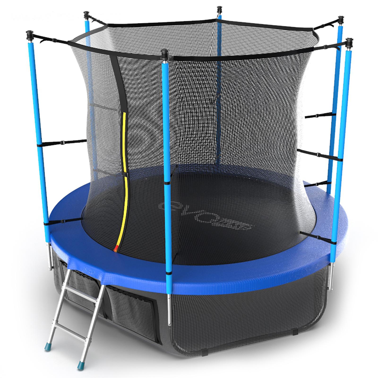 Батут EVO JUMP Internal 8 ft, d=244 см, с внутренней защитной сеткой и лестницей + нижняя сеть, синий