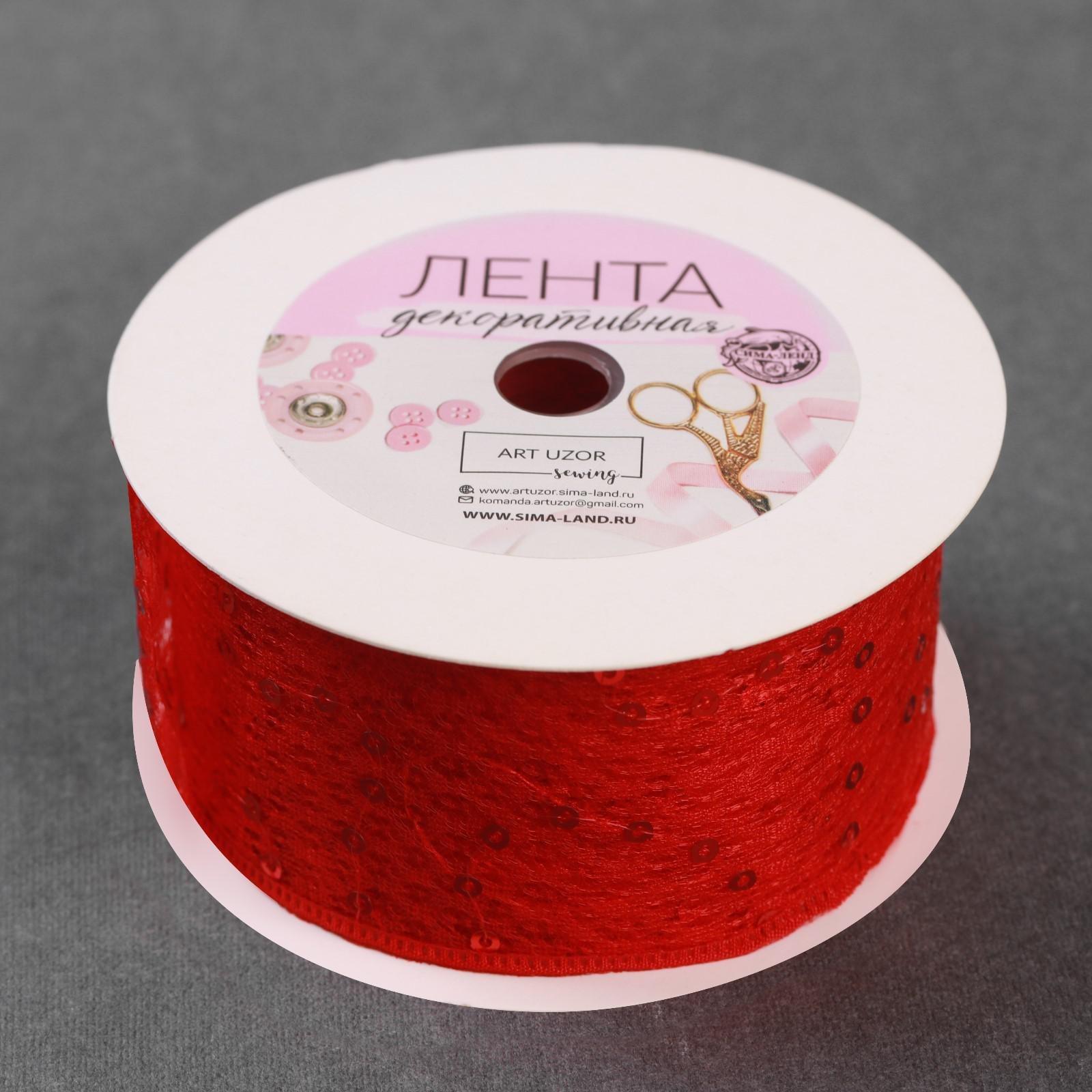 Лента декоративная «Пайетки», 40 мм, 9 ± 0,5 м, цвет красный