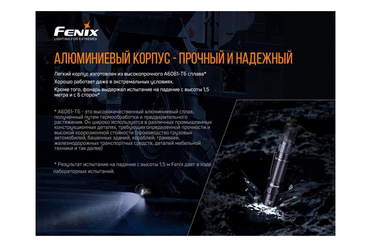 - Фонарь имеет высокий уровень защиты от воды, не боится даже полного погружение под воду на глубину до 2 метров. Не подведет во время сильного дождя или снегопада. Несмотря на легкость (всего лишь 82 г), корпус модели очень прочен. Создан из авиационного алюминиевого сплава, прошедшего специальную процедуру повышения твердости - анодирование HAIII. Такой материал отличается износоустойчивостью, стойкостью к воздействию абразивов и появлению царапин;