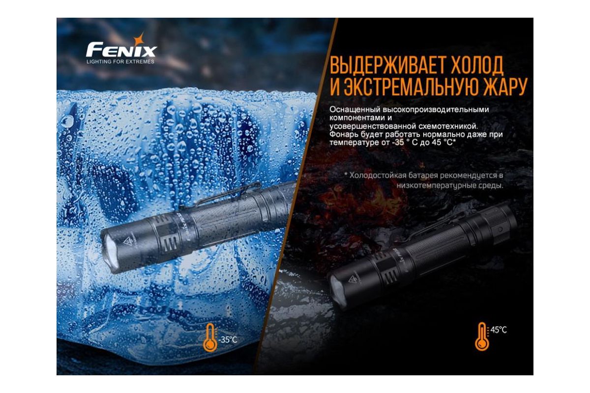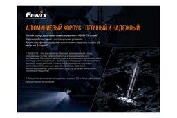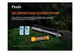 - Используемый источник света PD32 V2.0 - светодиод от немецкого производителя OSRAM KW CSLPM1.TG с резервом работы до 50 тыс. часов. Это надежный и долговечный диод. Имеется защита от перегрева. Рекомендуемый производителем источник питания для данного фонаря - аккумулятор Fenix ARB-L18 (размер - 18650, напряжение - 3,6V). Можно также использовать две литиевые батареи CR123A.
