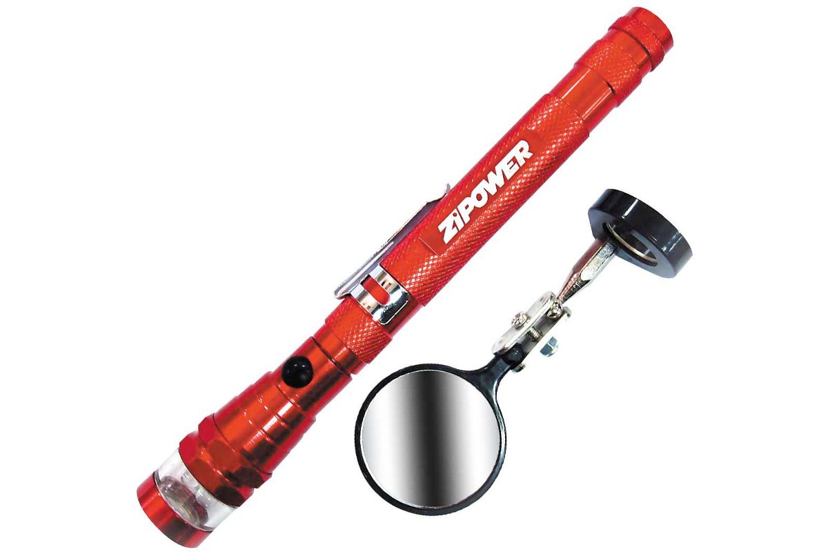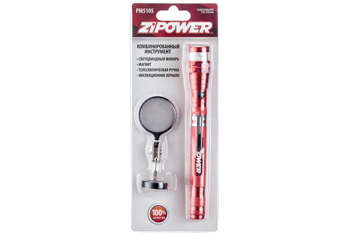Компактный фонарь с магнитом и инспекционное зеркало, который в сложенном виде легко прикрепляется к одежде с помощью металлической клипсы. Ручка телескопическая, очень удобная, гибкая шейка фонаря дает возможность изменять направление светового потока в пределах 360 градусов. Благодаря магниту вы сможете достать мелкие детали (до 2 кг) из труднодоступных мест. Подобный инструмент может пригодиться во время ремонта, в походе или в любой подходящей ситуации. Длина ручки может регулироваться от 175 до 570 мм.