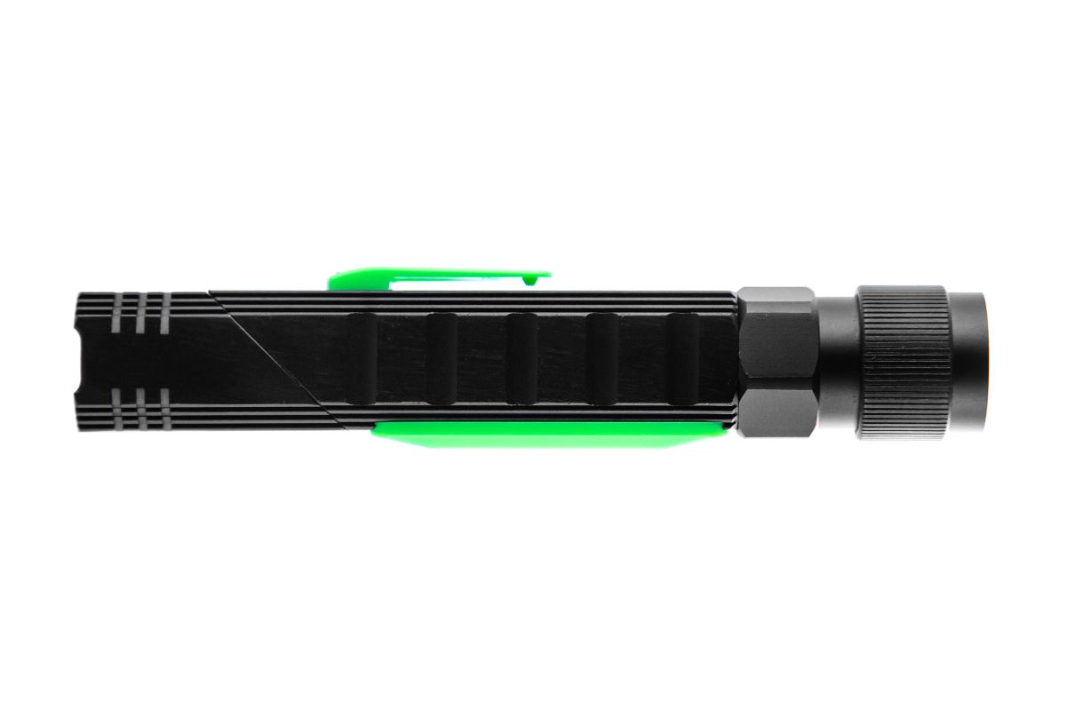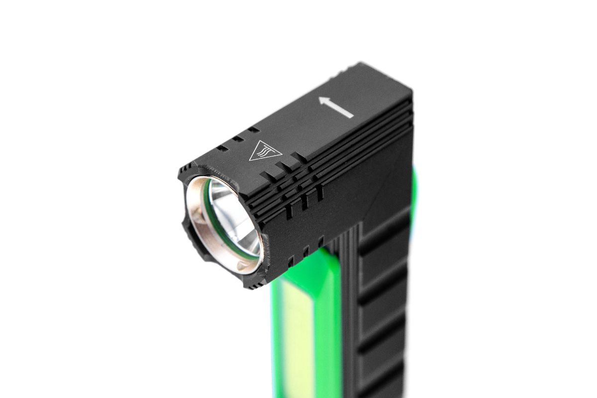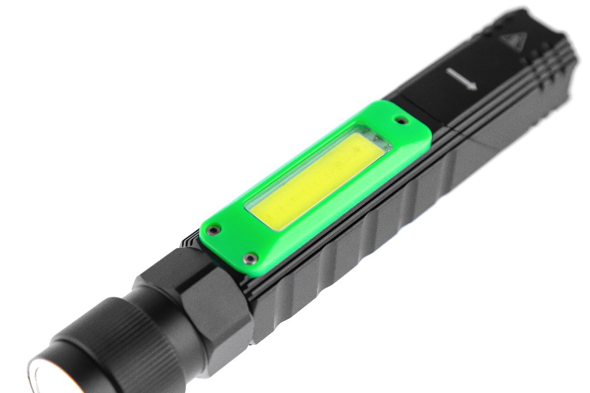Простой осветительный прибор. Обладает поворотным основанием что позволяет разворачивать световой поток на 90 градусов, в таком положении фонарик можно закрепить на нагрудном кармане и освободить руки.