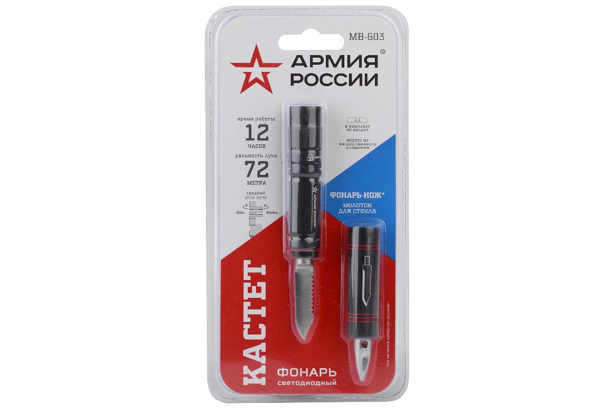 Фонарь АРМИЯ РОССИИ MB-603 эра универс. кастет 1.5Вт алюм нож молоток 1хаа бл