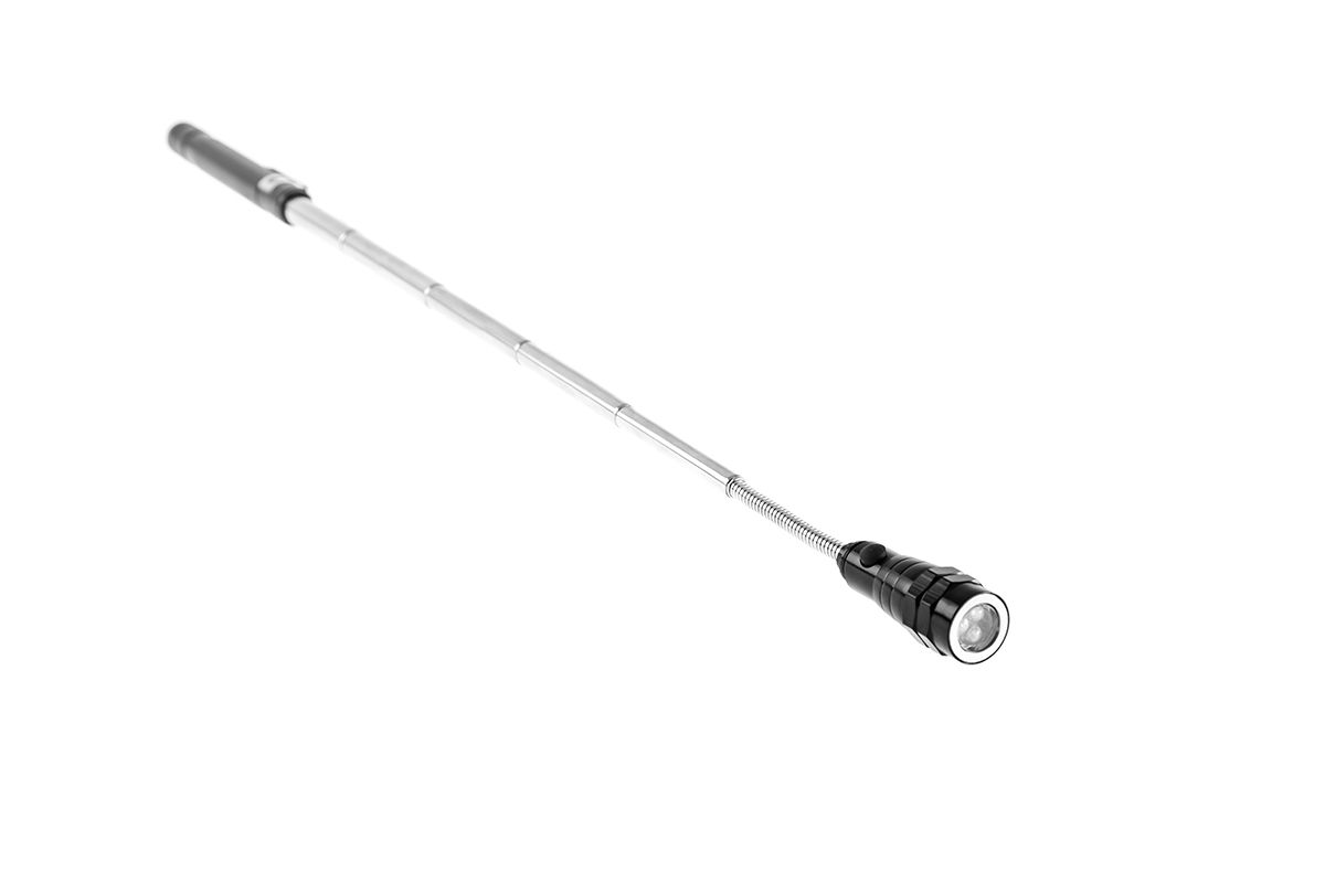Телескопическое раскладывание. Фонарик раздвигается на длину свыше 50 см. Отлично подходит для просвечивания глубоких и узких мест – труб, ям, скважин и т.п.