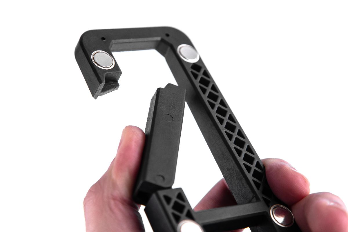 Осветительный прибор обладает складной конструкцией и магнитами для крепления к металлическим конструкциям.