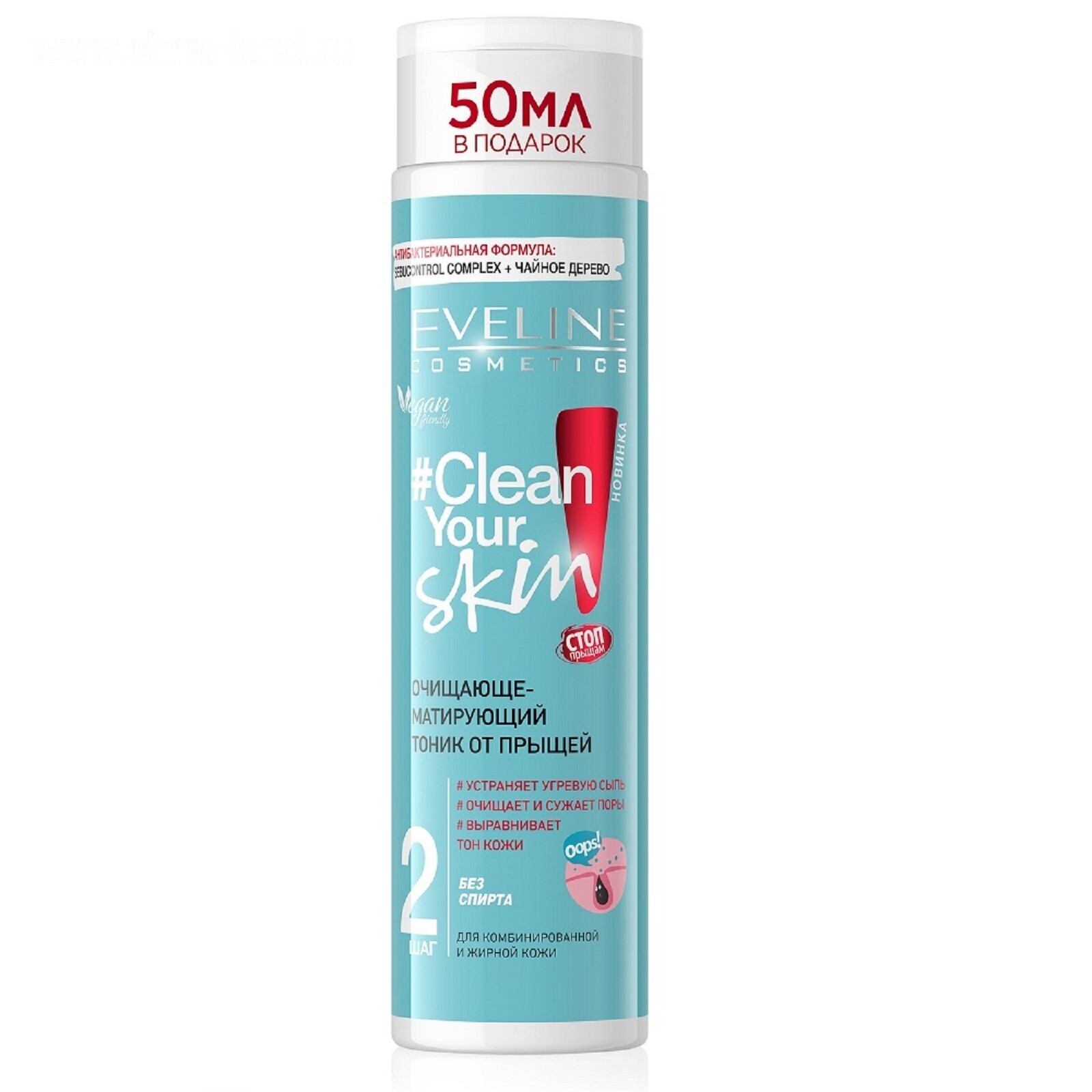 Тоник для лица Eveline Clean Your Skin "Очищающе-матирующий", от прыщей, 225 мл